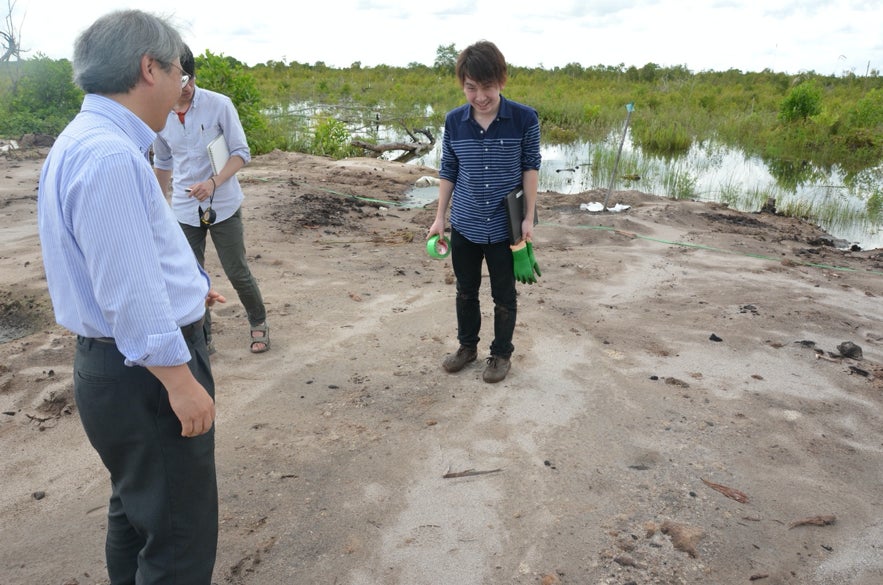 しかし、海外に行くということはハプニングがつきものです。泥炭地を訪れた際、なんとぬかるみにハマってしまいました!みんなに笑われ、車にはゴミ袋を履いて乗せられました、、、