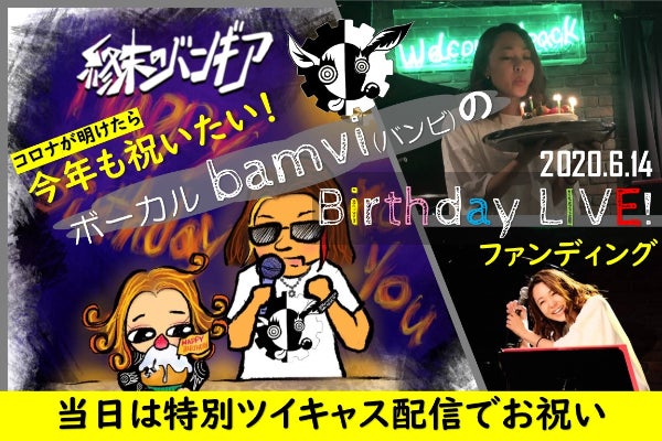 緊急事態宣言延長により、都内で開催を予定していましたボーカル bamvi(バンビ)の「誕生日記念ライブ」ですが、誕生日の当日である6月14日(日)の開催は断念いたしました。しかしながら誕生日記念の特別「無観客ライブ」配信、そして緊急事態宣言や外出自粛要請の解除後には必ず「観客動員ライブ」でのお祝いを実現させたいと考えています。