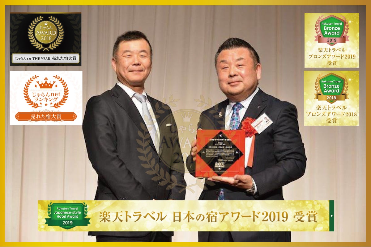 宿泊におきましては、「じゃらん OF THE YEAR売れた宿大賞」を2008年〜2010年に3年連続、2014〜2018年と5年連続受賞、更には「楽天トラベルアワード」では日本の宿アワード・ブロンズアワードなどを受賞し、4年連続でアワードを受賞しています。