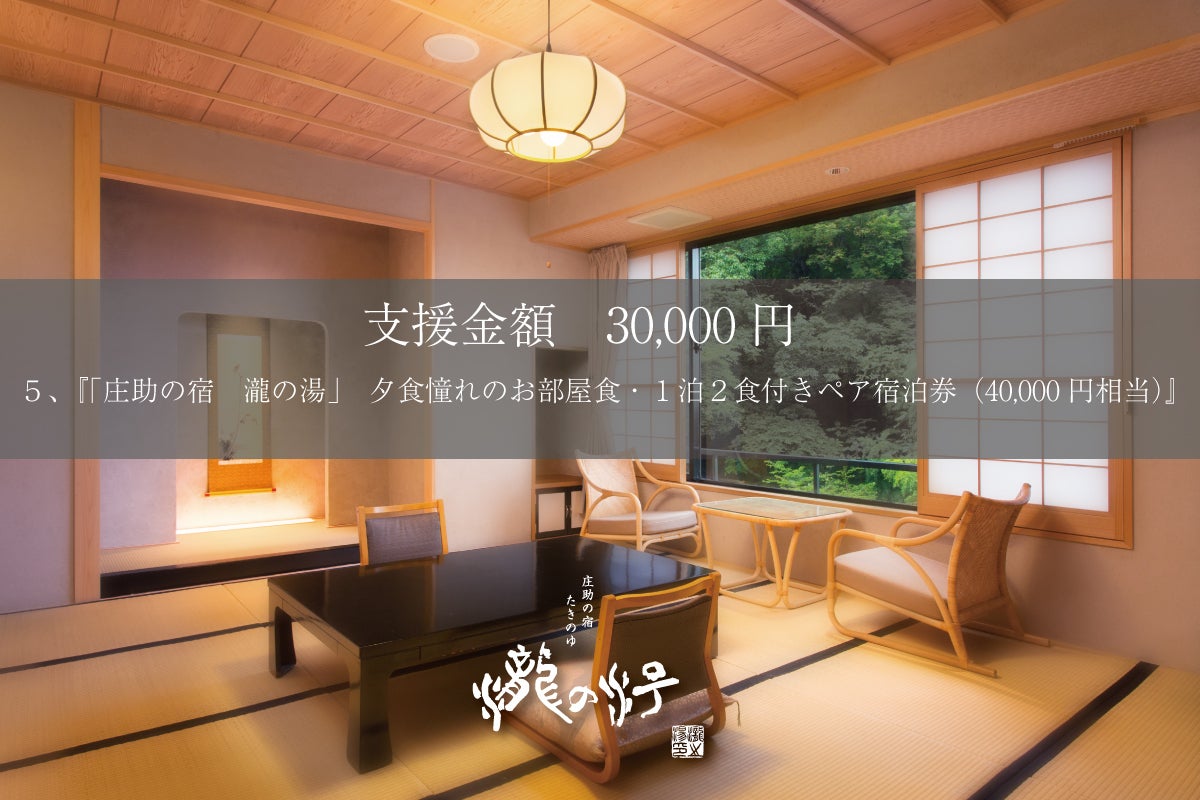 リターン 『「庄助の宿 瀧の湯」夕食憧れのお部屋食・1泊2食付きペア宿泊券(40,000円相当)』
