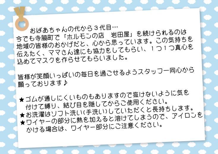 地元でマスク不足が解消される頃…まごころ価格で販売し続けることは手作りマスク販売で生計を立てている人に申し訳ないという理由で、お母さんは岩田屋での販売を中止しました。