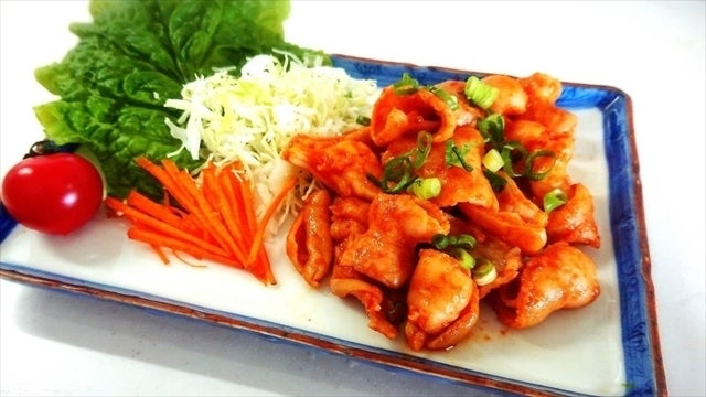 大腸・直腸・胃…人気部位をミックスし、韓国風ピリ辛タレに漬け込んであります。