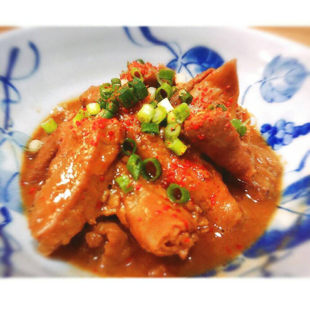 ガツ(胃)をコトコト煮込み、どて煮風に仕上げています。袋のまま温かくなるまで湯煎にかけてください。