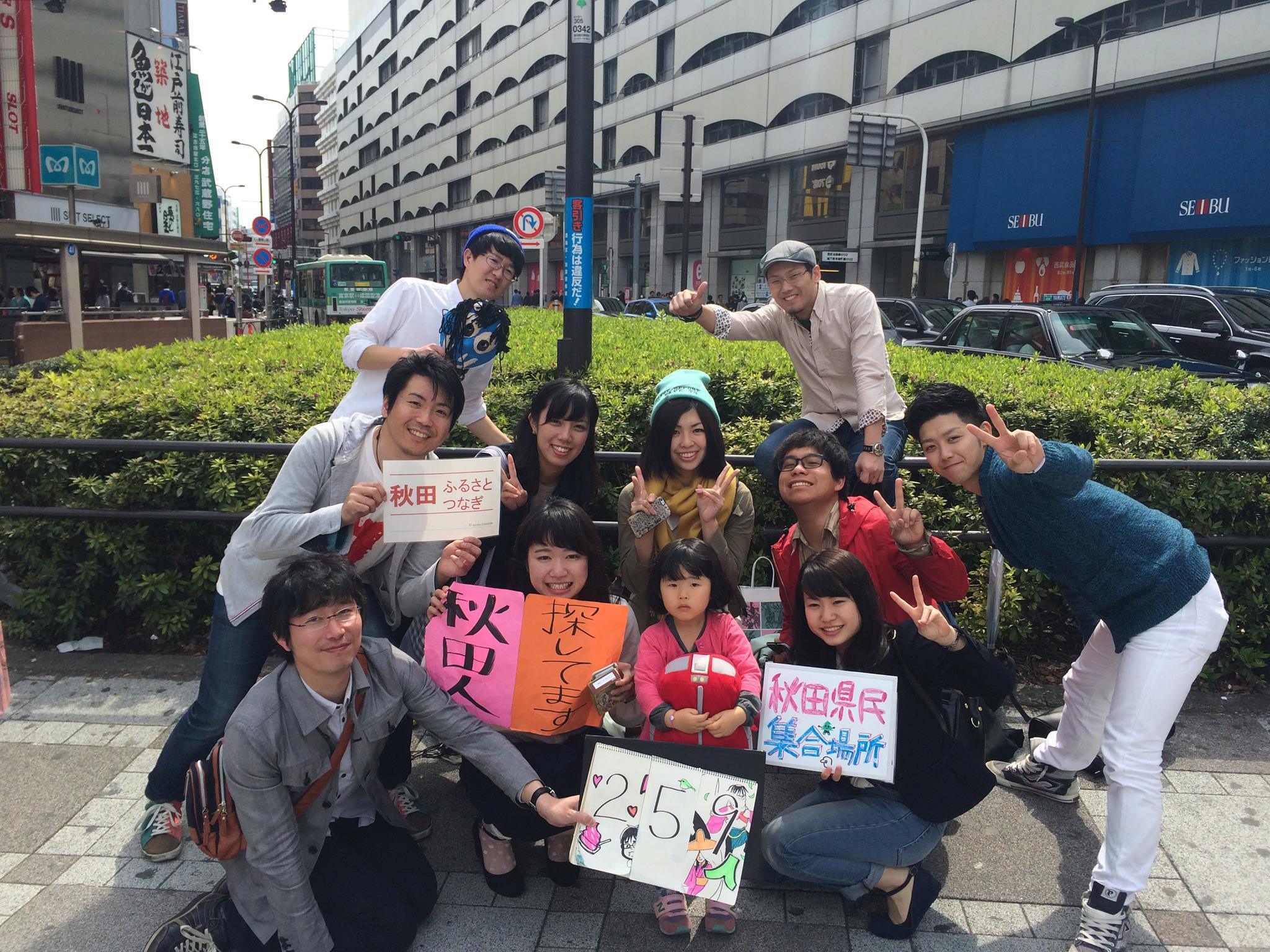 東京の道端で「秋田の人いませんか〜!?」と呼びかけ一緒に写真を撮ってSNSに上げる活動(本人からの許可を得て掲載)