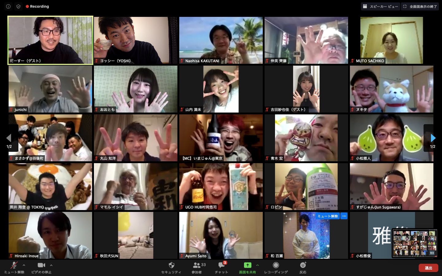 2020/06/02 16:302020.5.29 秋田つまみプロジェクトのオンライン飲み会#01を開催しました!ゲストに秋田出身の3名(その中の1名はこちらのプロジェクト代表の須田です)、MCに東京在住で秋田未経験のいまじゅんさんを迎え、参加者は秋田にまつわるものを持ち寄り、秋田話に花を咲かせました。■■ ゲスト ■■・元NHK秋田アナウンサー 吉田紗也佳さん(横手市出身)・CAMPFIRE 照井さん(横手市出身)・あきた総研 須田紘彬さん(八郎潟町出身)■■ MC ■■・いまじゅん(今井遵)さん初回で告知も直前になってしまったにも拘わらず、県内外から30名を超える沢山の方々が参加してくだって(遠くは沖縄から)、どれくらい集まってくれるかドキドキしていたプロジェクトメンバーもとても美味しいお酒を飲むことができました。また、こちらの飲み会の中でこちらのクラウドファンディング開始のセレモニーも行いました。これからもいろいろな企画を考えていますので、楽しみにしていてください!応援もよろしくお願いします! もっと見る