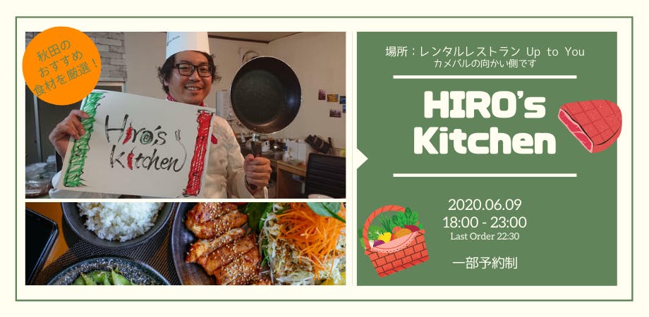 2020/06/05 08:00秋田市南通のカメバルの向かい側にあるレンタルレストラン Up to Youにて、「1日レストラン」やります!リターンは素材も多く、 「どうやって食べるのが良いかのオススメレシピ」などのお問い合わせもいただきました。同時にオンラインでの配信もいたします。是非、そちらもご覧ください!■来店の予約・詳細はこちらhttps://hiros-kitchen0609.peatix.com/view もっと見る
