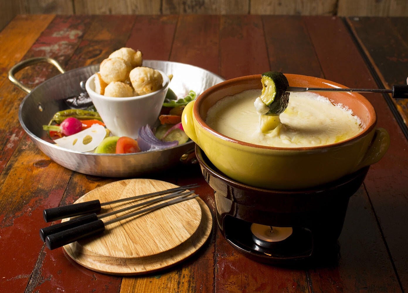 当店自慢のチーズフォンデュは秘伝のレシピな為公表はできませんが、濃厚で深みのがあり病みつきになること間違いありません。ゴールデンチーズ、スモーク、トマトバジル、アメリケーヌ、黒トリュフとバリエーション豊富な5種。