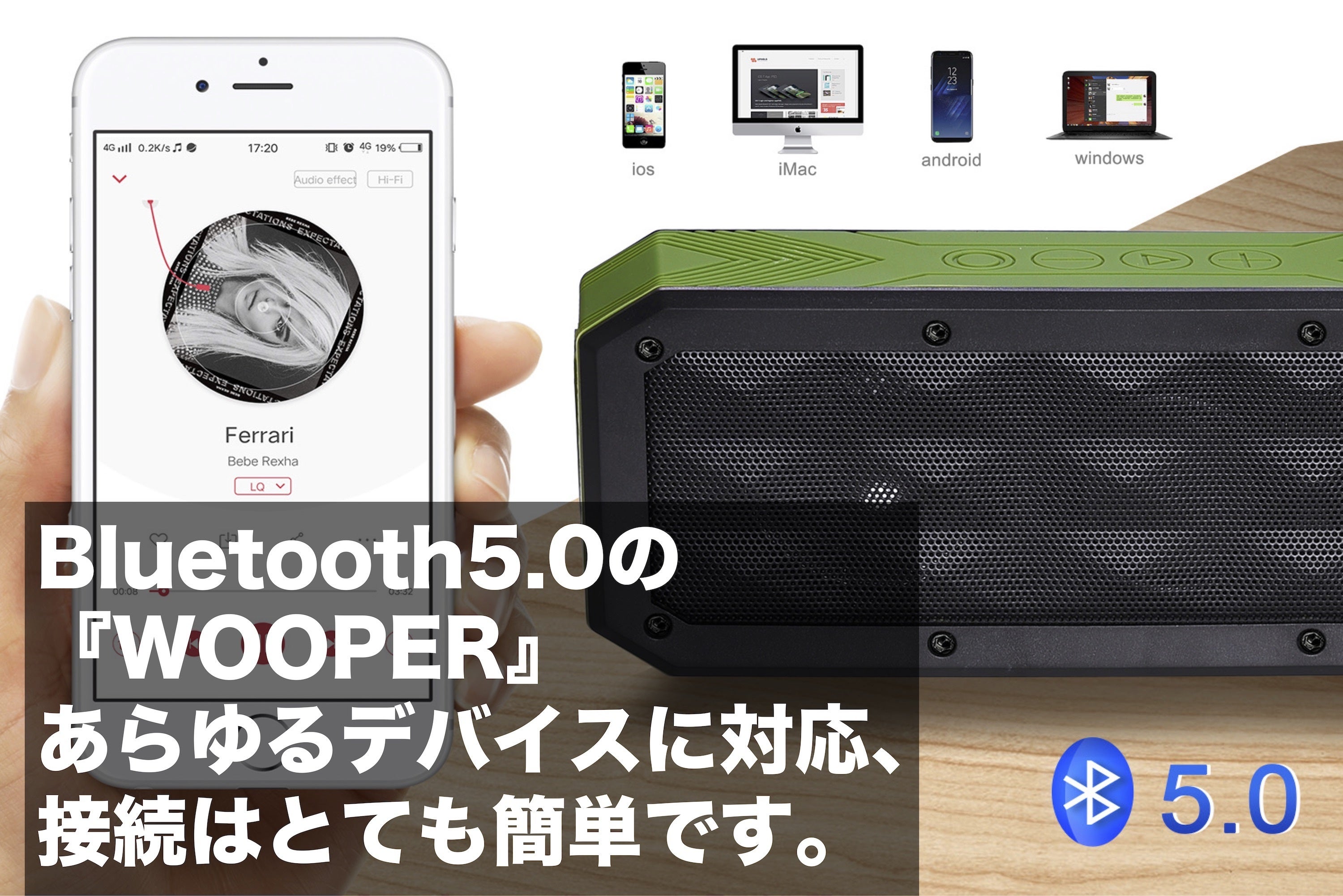 ハードな環境で勝ち抜くBluetoothスピーカー『WOOPER』は、ありとあらゆるシーンで活躍します。男性の皆さんにとっては大きな魅力のあるガジェットです!大手メーカーのスピーカーのクオリティには負けません!