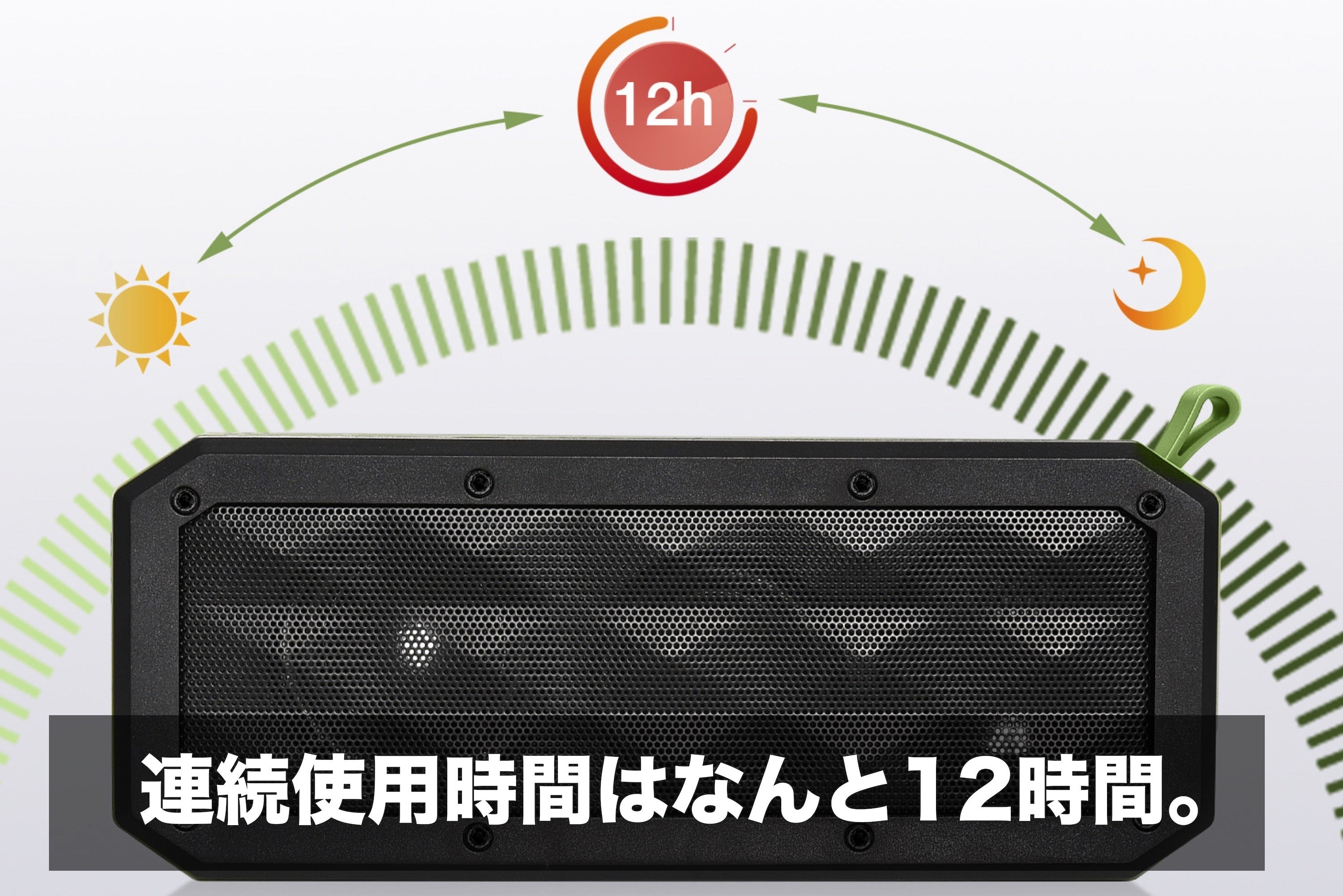 せっかくのアウトドアパーティでも充電がすぐに無くなってしまっては意味がありません。『WOOPER』は連続約12時間の再生が可能です。