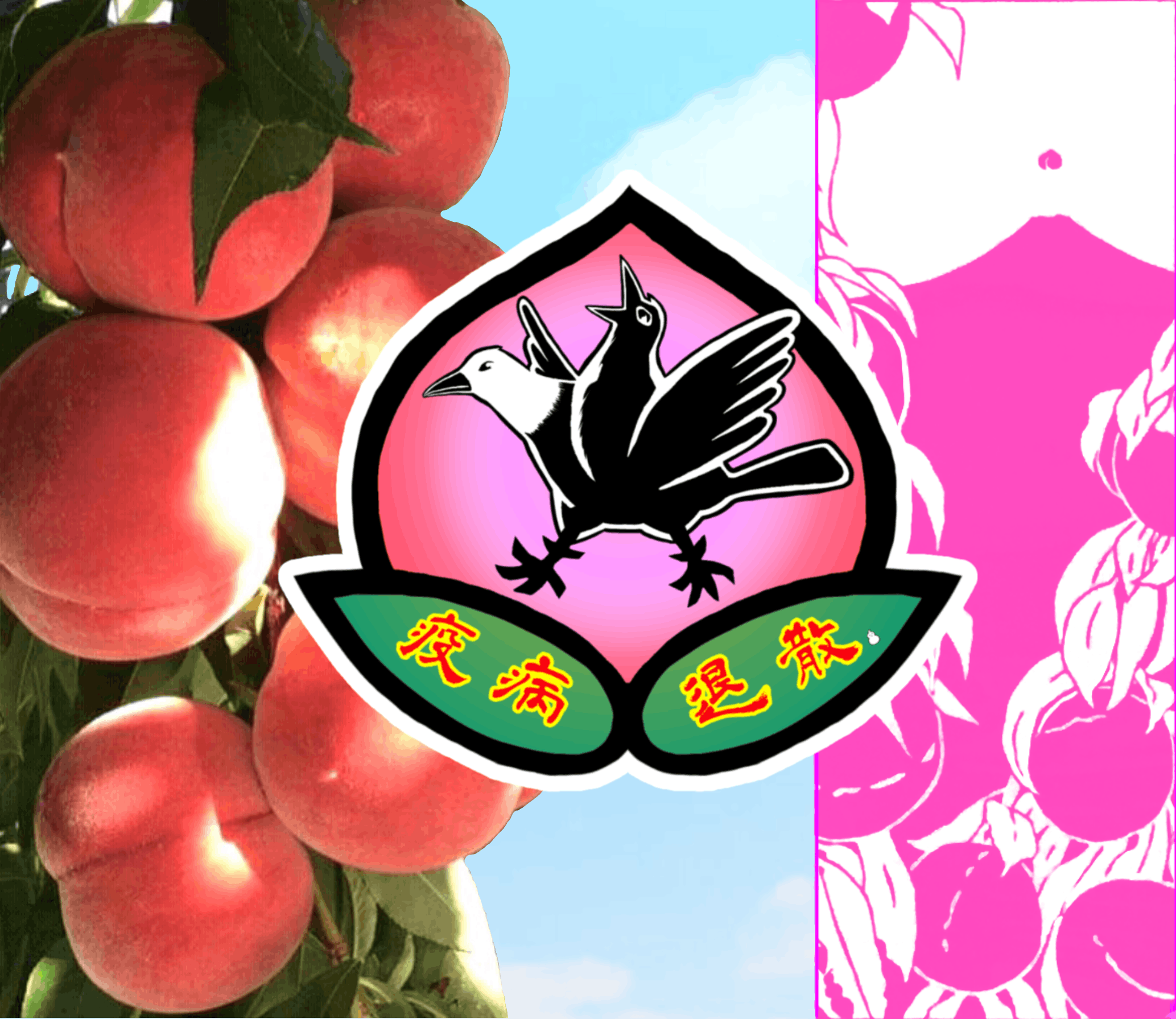 江戸時代の甲斐国(山梨県)の文献「暴瀉病流行日記(ぼうしゃびょうりゅうこうにっき)」〈山梨県立博物館所蔵〉に、「我らの姿を朝夕に仰ぎ、信心する者は必ずその難を逃れることができるであろう」と疫病の流行を予言していたと伝えられている、頭が二つの不思議な鳥が描かれています。この「ヨゲンノトリ」と、邪鬼を払うと言われている「桃」を合体させました。コロナ退散の祈りを込めた、丸一仙花の自信作。玄関や車・バイク、ノートパソコンやタブレットなどに是非お貼りくださいませ。