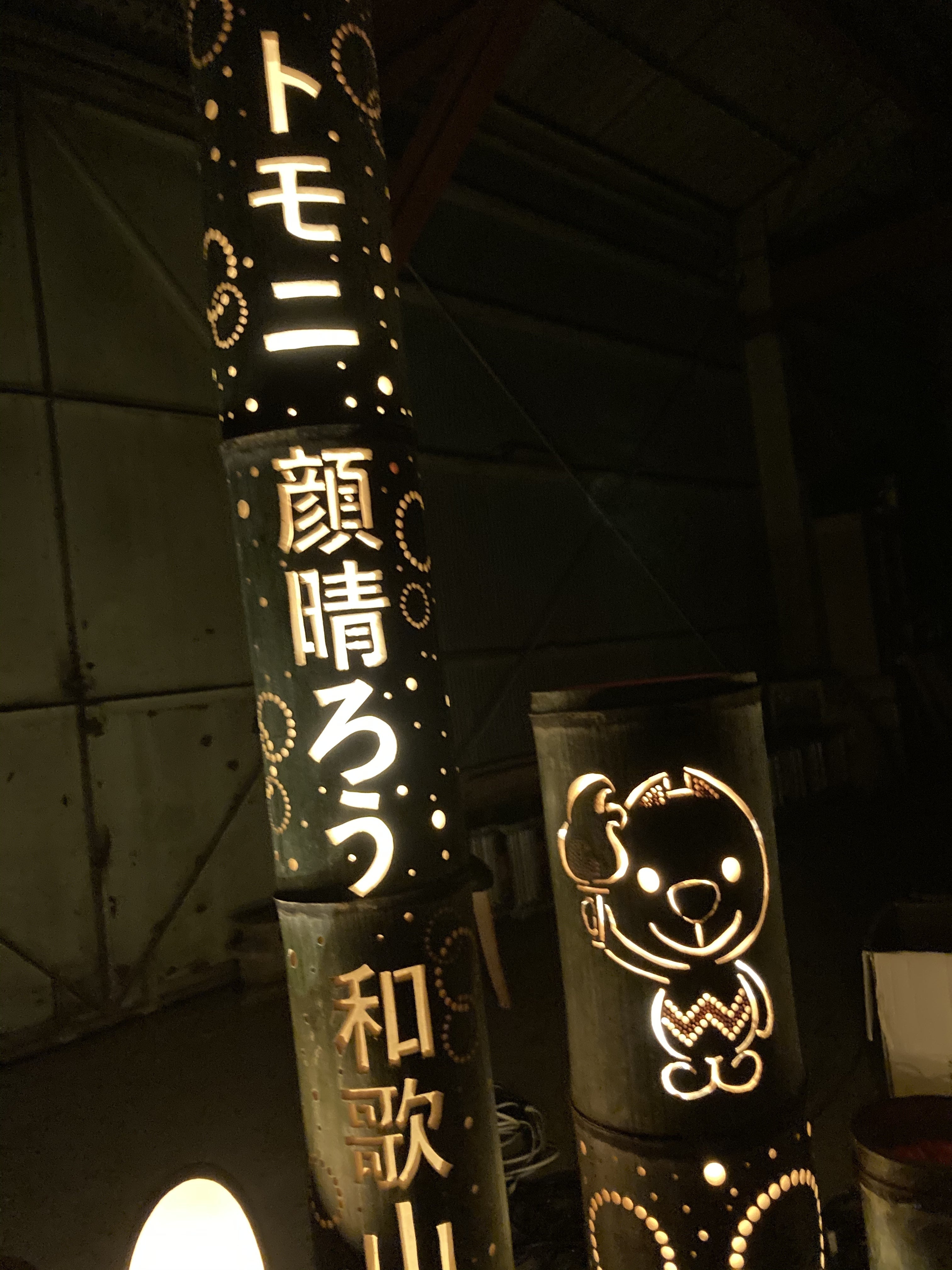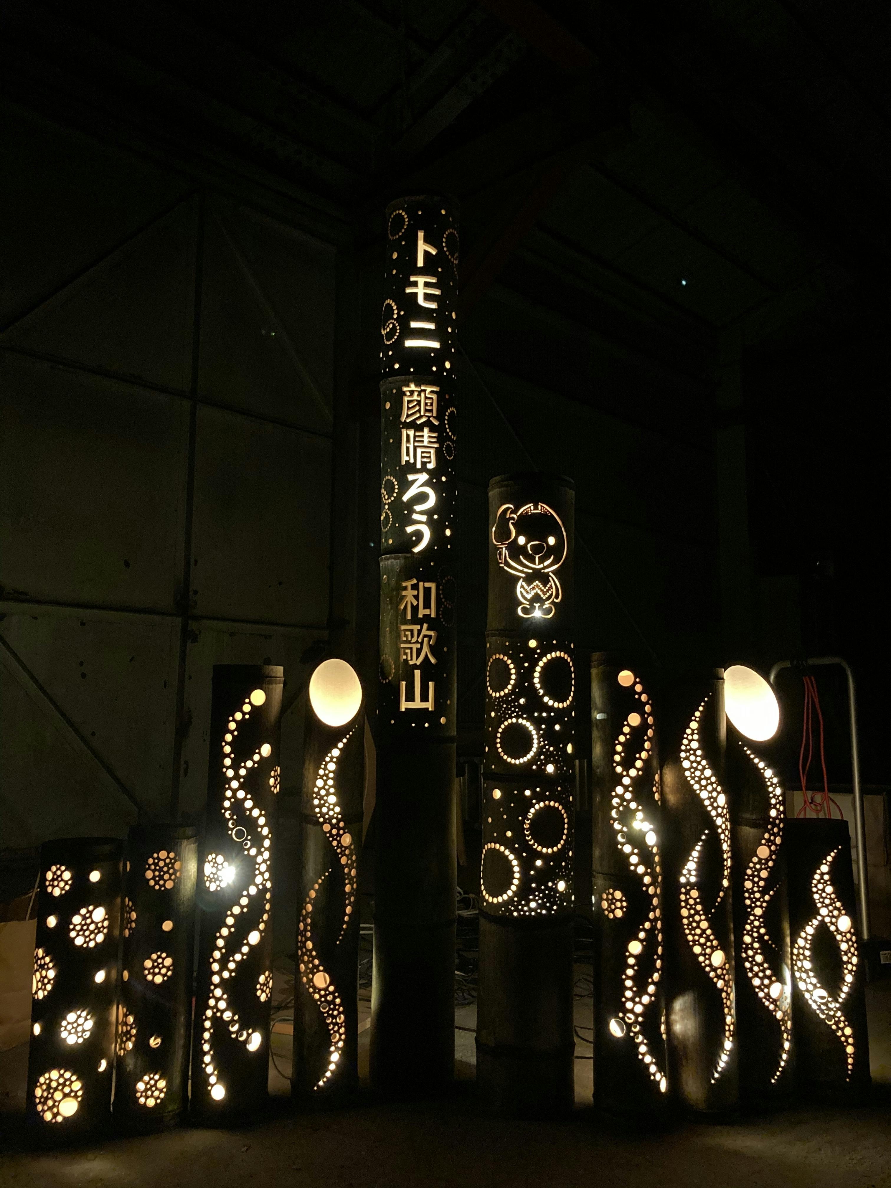 CHIKAKENさんや三重県の川渕さんやアドベンチャーワールドさんのパンダの竹など、色々コラボした竹あかりが無事に設置完了しました^_^