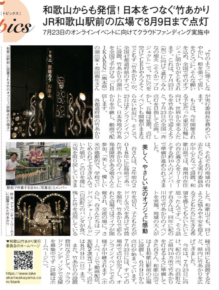 本日、リビング和歌山新聞さんに、みんなの想火プロジェクト和歌山の活動が掲載されました #感謝