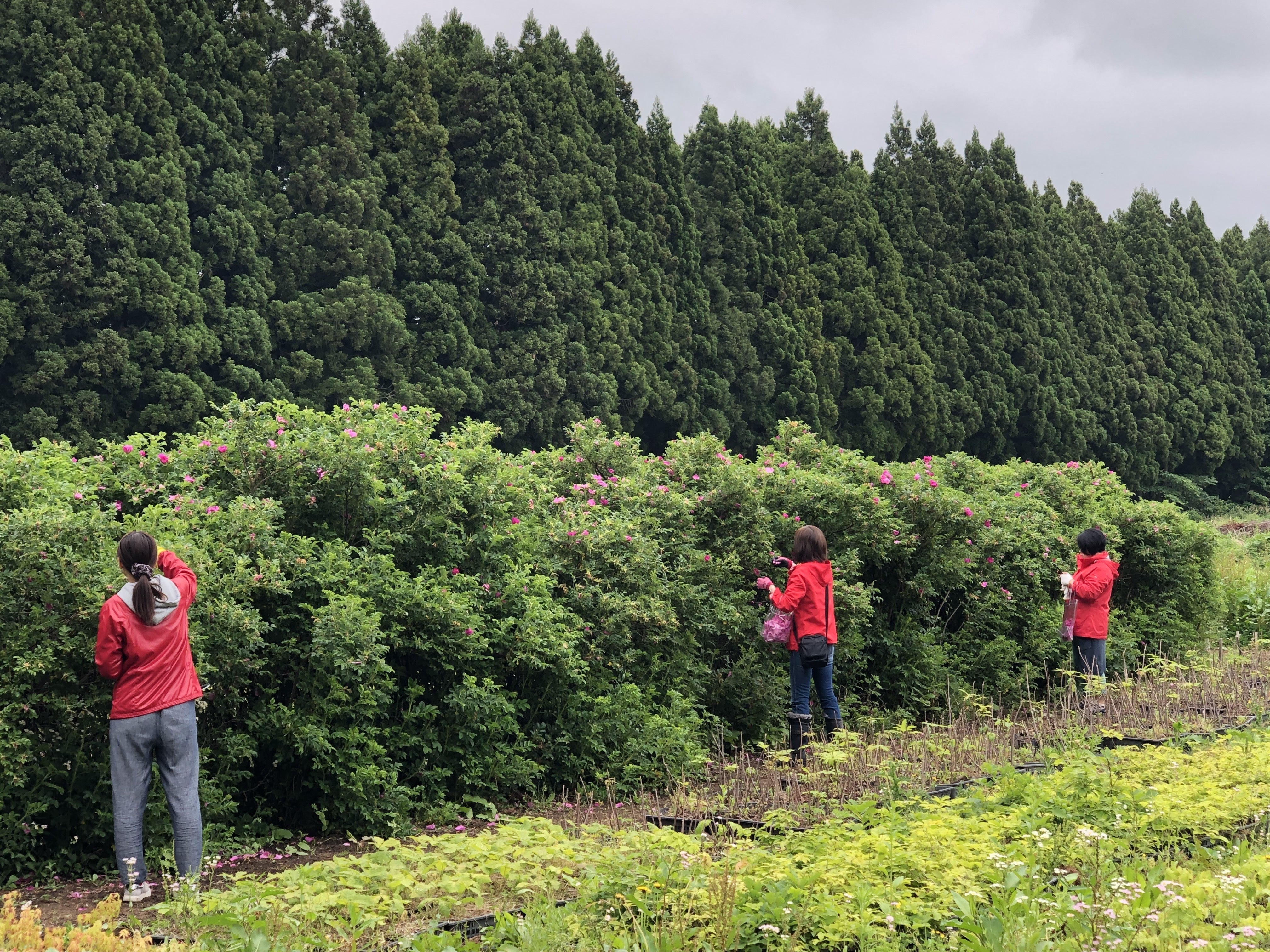 「ハマナス花摘み体験会」去年の様子。ふぁ〜といい香り。