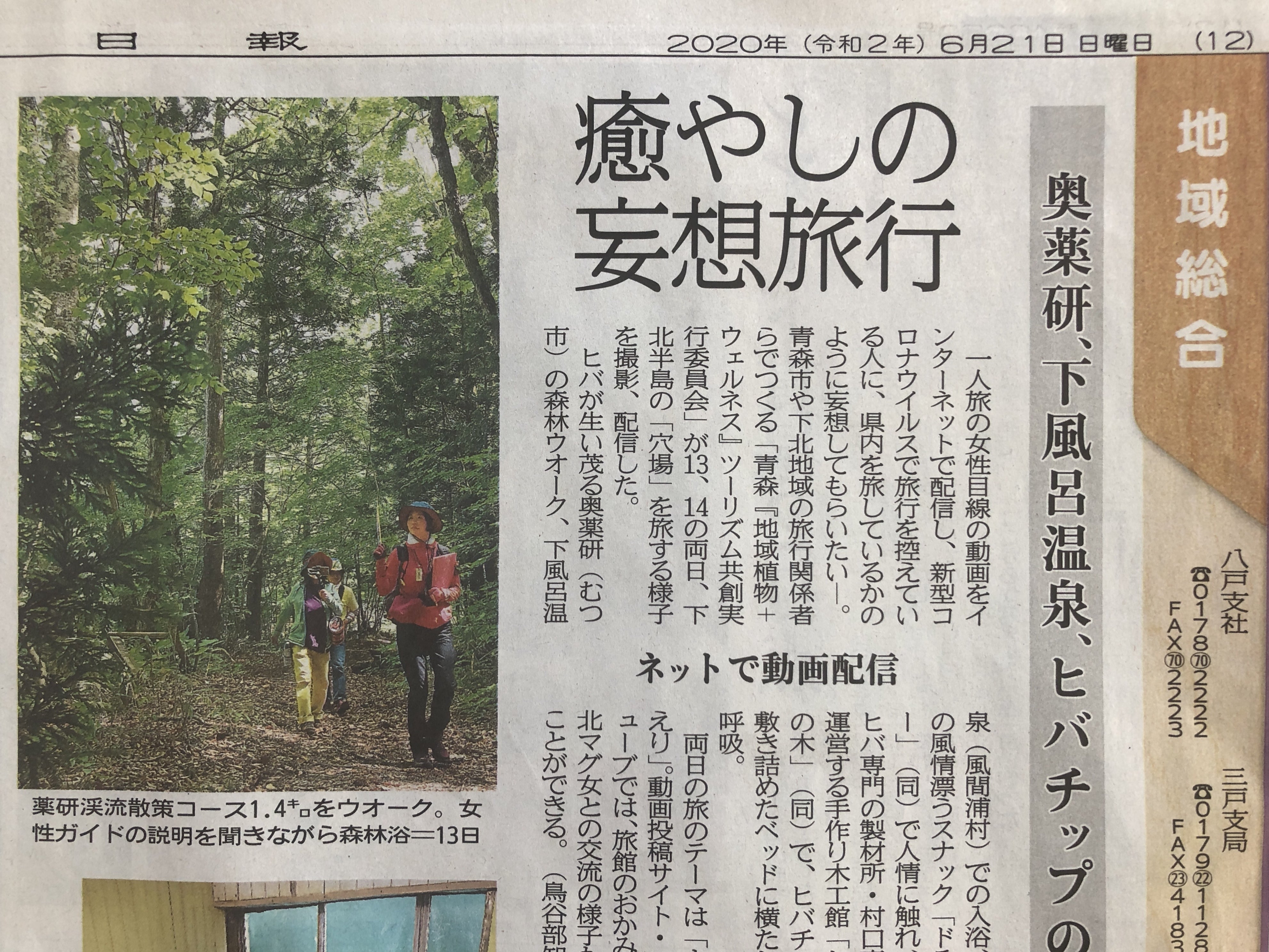 6月21日(日)付朝刊 東奥日報(青森県青森市・日刊紙)の「地域総合欄」で紹介していただきました!
