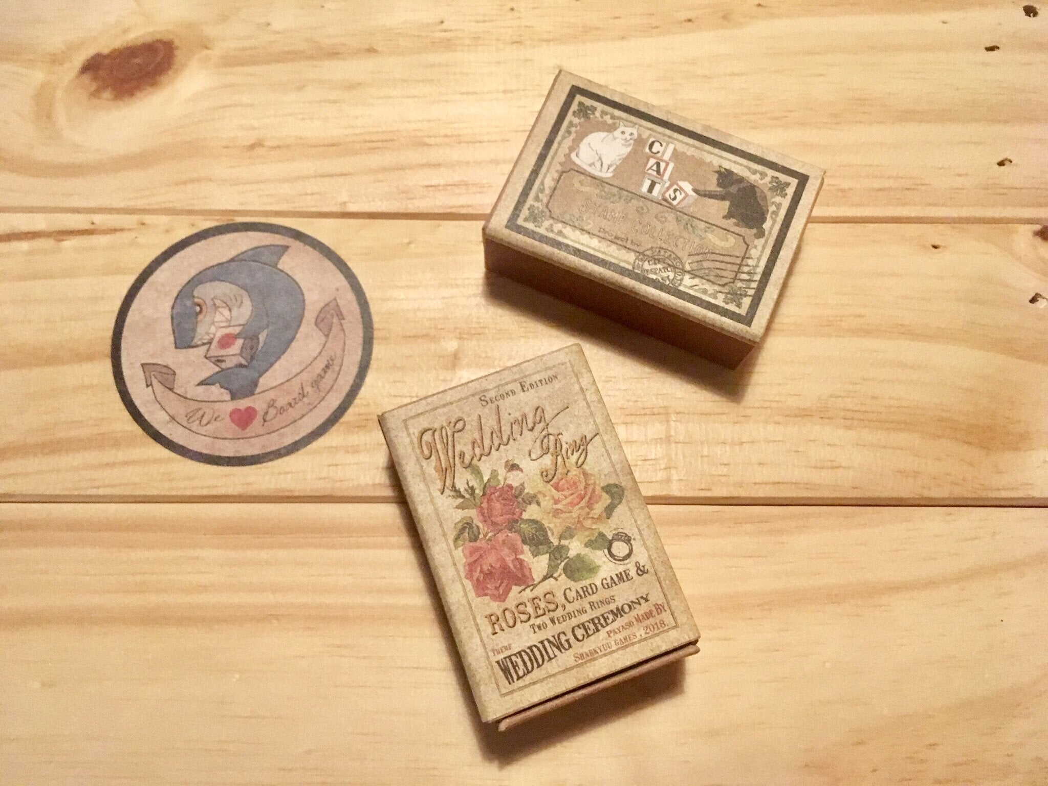 2020/06/26 01:55支援者の皆様へ商品の進捗状況についてご報告いたします。【パッケージ】大変お待たせいたしました。「Stamp collection CATS」「Wedding Ring 第2版」のパッケージが完成いたしました。予想以上の出来栄えでとても満足しています!早く皆様のお手元に届けられるよう尽力いたします。中のカードなどが届き次第発送いたしますので、商品のお届けまで今しばらくお待ちくださいませ。【クラウドファンディング第3弾について】おかげさまで目標金額の60%を達成することが出来ました!しかしながら残り40%が残っております...ぜひ!皆様のお力をお貸しくださいませ!今回からマッチ箱のゲームが4個入るコレクションボックスもリターンに設定いたしましたので、今回のゲームと合わせてコレクションしてみてはいかがでしょうか♪今回のCF第3弾は大量のダイスを発注するために、ゴール金額が少し高くなってしまいましたが、皆様のご協力の元、告知又は支援して頂けますととても嬉しいです。URL:https://camp-fire.jp/projects/view/298232 もっと見る