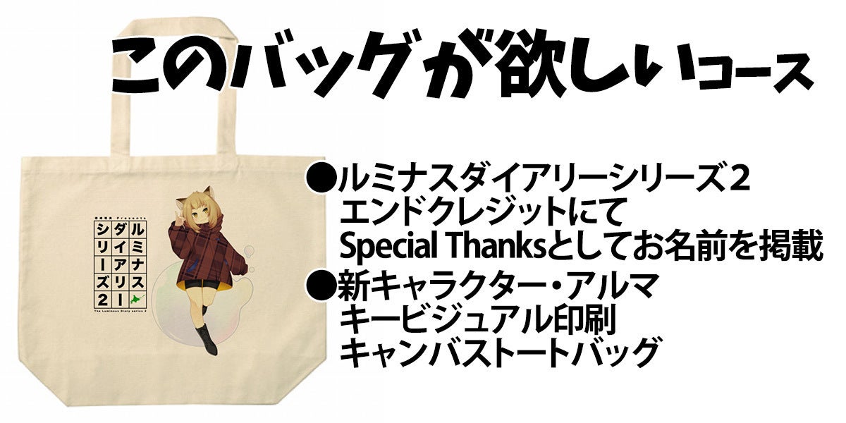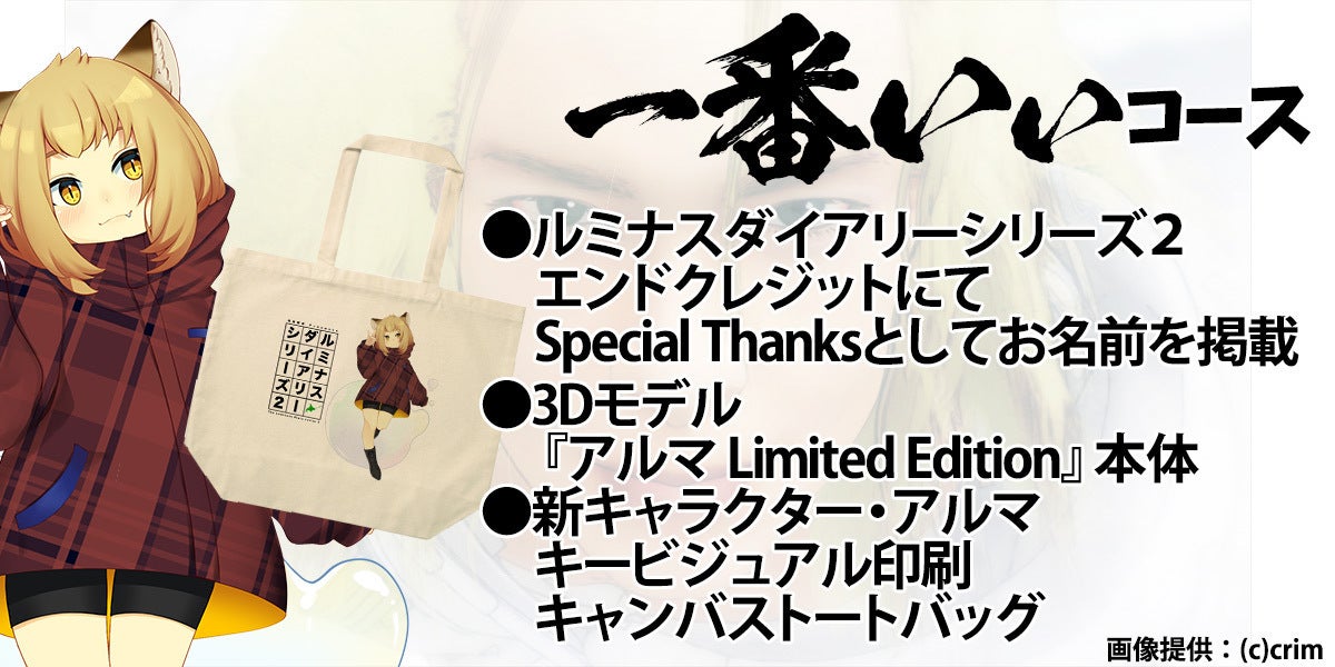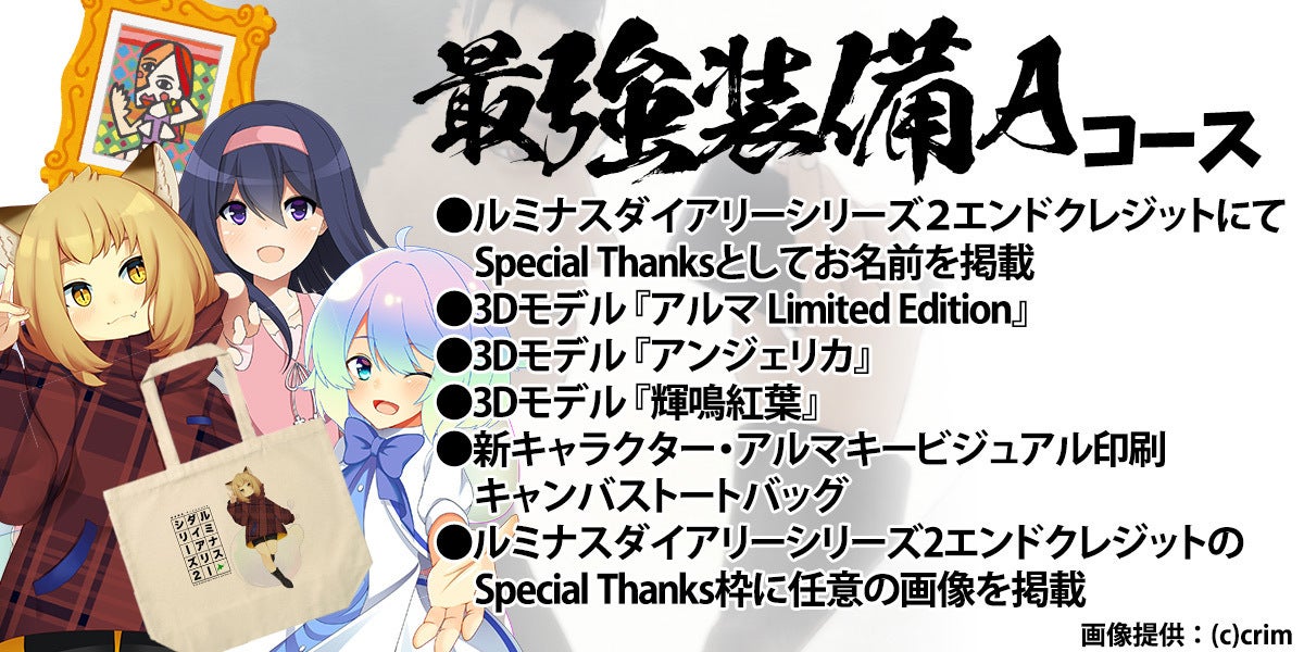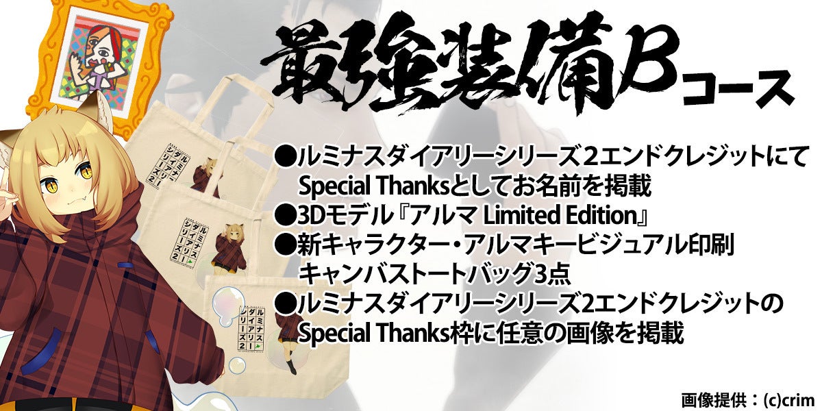 そして最強装備Aコース同様、ルミナスダイアリーシリーズ2のエンドクレジット内Special Thanks枠にて、ご支援されたパトロン様の任意な画像を掲載させていただく特典が付いております。