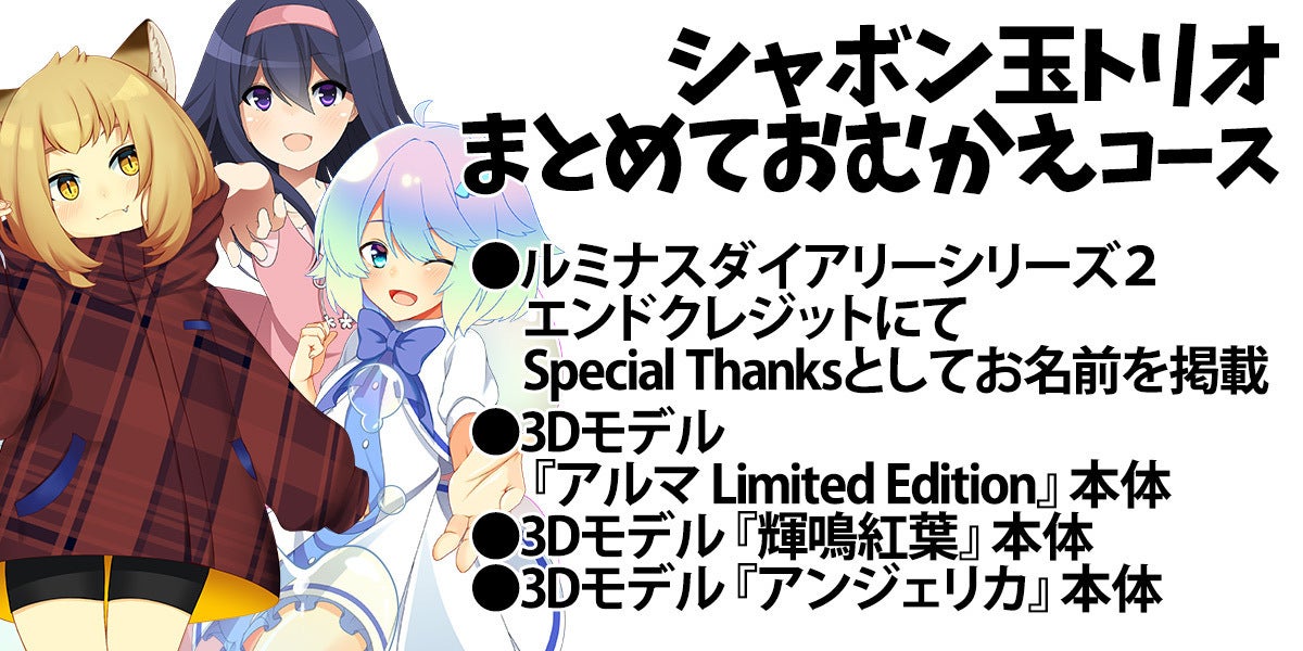 前回のプロジェクトでリリースされた輝鳴紅葉およびアンジェリカの3Dモデルがバンドルされたセットです。