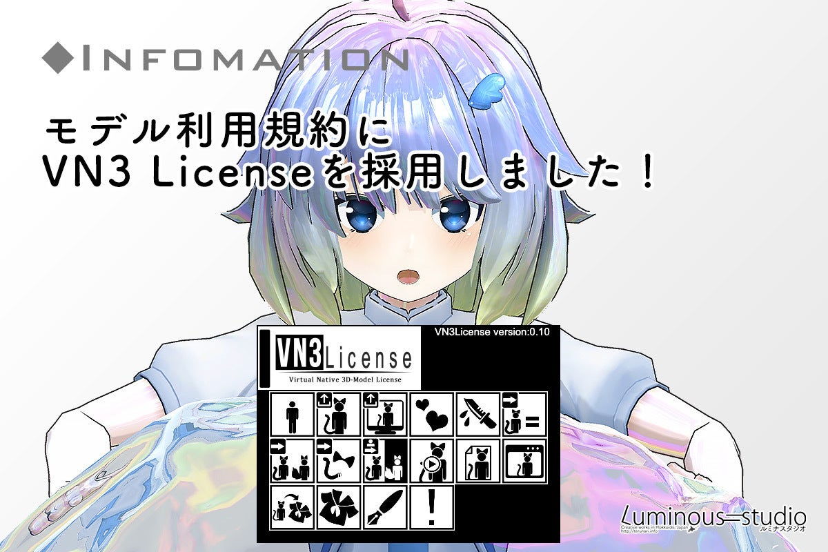 ▼新たに制作されるモデルのライセンスに【VN3 License】を採用します今回制作するルミナスダイアリーシリーズ2の主人公、アルマは一般リリースを予定しております。その際にソーシャルVRに対応する形で、より多くのVRユーザーが活用することができるのをルミナスタジオおよびKMBL-worksは望んでおります。前回のプロジェクトではクリエイティブ・コモンズをベースに独自のルールを設けることで対応しましたが、今回はよりご支援いただく皆様へよりわかりやすい形でルールを認知することができるよう、【VN3 License】を採用させていただくことになりました。(VN3 Licenseの公式サイトはこちらから)これにより許諾する要項をはっきりすることができるため、お求めいただく多くの皆様がご自身の理想の表現をこなせるようサポートすることが可能となります。上記の画像のように図で簡単に表すこともでき、別途利用規約の明文をご用意することも可能です。また、今後リリースされるアバター調整コミッションサービス等の条項にも対応しており、皆様がモデルデータをより自分らしく表現することができるようになっております。以下が明文化した利用に関するルールです。非常にオカタい文書ですが、興味のある方はぜひお読みいただけると幸いです。----------------------ルミナスタジオ・KMBL-worksコラボレーションモデルデータ 利用規約KMBL-works (以下「権利者」といいます)は、ルミナスタジオ・KMBL-worksコラボレーションモデルデータ 利用規約(以下「本利用規約」といいます)に従って、本利用規約に定義される本データの利用をユーザーに対して許諾(以下「本許諾」といいます)します。ユーザーは、本データの利用開始前に本利用規約の内容を必ず確認してください。なお、ユーザーは、方法を問わず本データの購入、ダウンロード、インストール等の利用の開始時点で、本利用規約に同意したものとみなします。なお、ユーザーが未成年者等の制限行為能力者である場合、本利用規約への同意にあたり、事前に親権者等の法定代理人の同意を得なければなりません。個別条件1.許諾対象データ3Dモデル『Angelica』・『Kouyou Terunari』・『Arma』2.利用条件 A.個人による利用 許可B.法人による利用 不許可 C.自ら利用する目的で、ソーシャルコミュニケーションプラットフォーム(VRChat、Virtual Cast、cluster等を含みます)へアップロードすること 許可D.自ら利用する目的で、オンラインゲームプラットフォームへアップロードすること 許可E.そのプラットフォームにおいて第三者に利用させる目的で、ソーシャルコミュニケーションプラットフォームやオンラインゲームプラットフォームへアップロードすること 不許可F.性的表現への利用 許可G.暴力的表現への利用 許可H.政治活動への利用および、宗教活動への利用 不許可I.調整、外観を損なわない範囲でのポリゴン数削減、およびファイル形式を変換すること 許可J.本データまたはパーツを改変することおよび、改変したデータを本データと同じ条件で利用すること(本データまたはパーツを主たる素体として、改変を行う場合を含みます) 許可K.他のデータを改変する目的で、本データまたはパーツを用いること(本データまたはパーツを従たる素体として、他のモデルを主たる素体として改変を行う場合を含みます) 許可L.調整または改変を第三者に委託して行うことおよび、委託のために本データを貸与すること 許可M.未改変状態での再配布 不許可N.改変した本データを配布すること 不許可O.映像作品、配信(Youtubeを含みます)、放送への利用 許可P.出版物および電子出版物への利用 許可Q.有体物(グッズ)への利用 不許可R.製品開発等のためにソフトウェア(ゲームを含みます)へ組み込み、容易に取り出せない状態にして配布すること 許可S.本データのメッシュやウェイトをコピーして、本データのための衣装データ等を作成すること(ただし改変が著しく少ない場合を除きます) 許可T.本データのメッシュやウェイトを利用せずに、本データの規格に準拠した新たな衣装データ等やテクスチャデータ等を作成すること 許可 U.本データをそのまま利用しないで、本データをモチーフにした二次的著作物(いわゆる二次創作)を作成すること 許可V.利用時のクレジット表記 不要W.権利義務の譲渡等 不許可X.特記事項 あり3.特記事項データを改変せず動画や配信メディアでご利用される場合は、何らかの形でのクレジット表記にご協力願います。4.権利者および権利者への問い合わせ先権利者:KMBL-works問い合わせ先:ウェブサイト:https://kmbl.booth.pm/5.クレジット表記(c)KMBL-works, Luminous=studio6.推奨するハッシュタグ#ルミナスタジオ 7.許諾期間および許諾の変更等許諾期間はユーザーとなった日から開始され、権利者によって利用の終了が指示されるまでとします。また、権利者から別途指示がある場合、当該指示は他の定めに優先するものとし、ユーザーはこれに従うか、または利用を終了しなければなりません