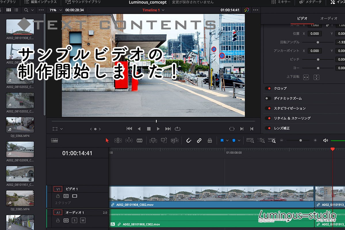 これまでのFinalCut Pro Xと比べてVFX合成とカラーグレーディングに強く、ハリウッドでも実績のあるこのツール、果たしてルミナスタジオで使いこなすことはできるでしょうか。