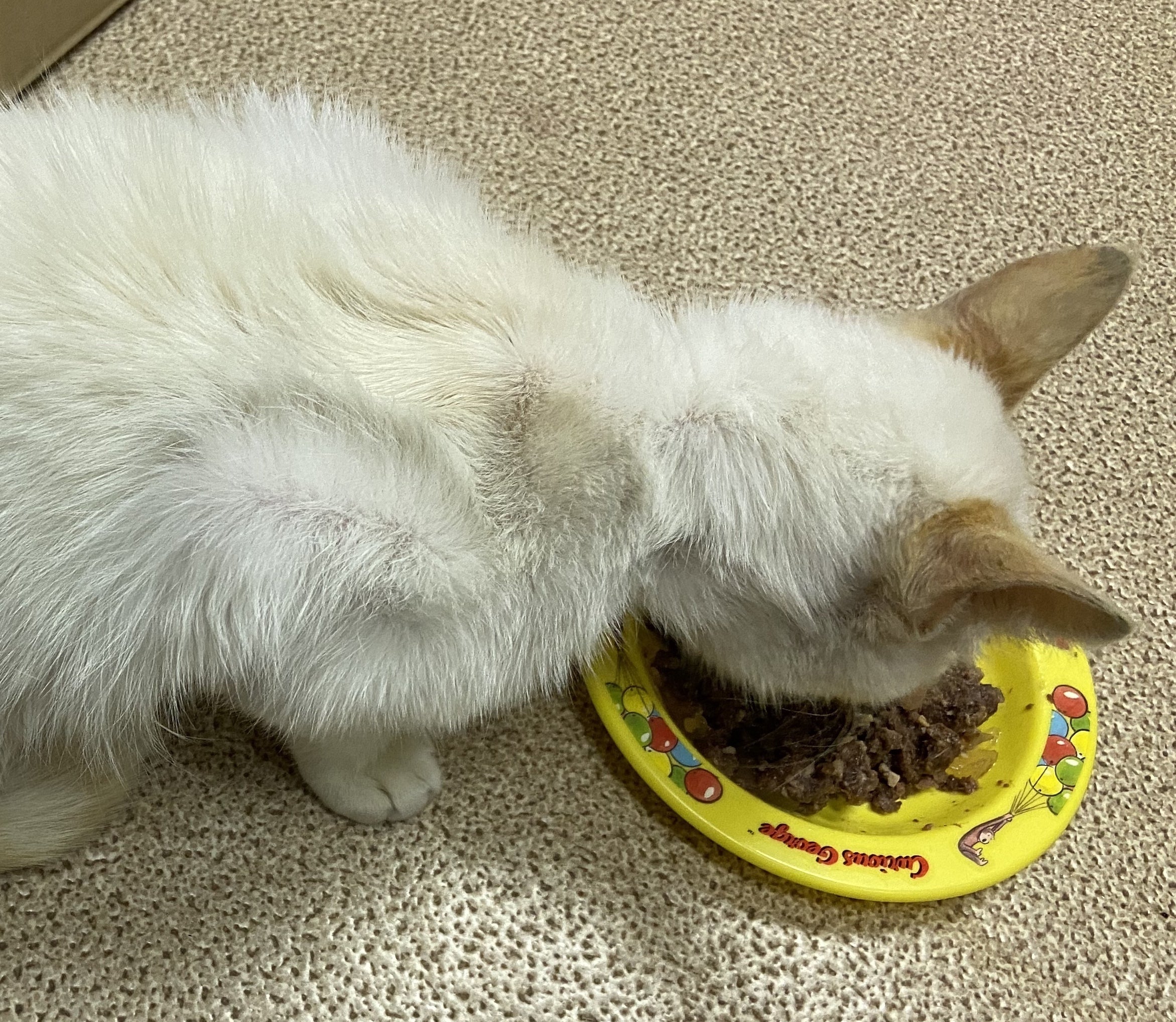 シロちゃんを発見した時は、もう助からないだろうと思うほど衰弱していましたが、まるで私を呼んでいるかのような鳴き声を思い出し、そのままにしておくことも出来ず急いでお世話になっている動物病院へ連れていきました。