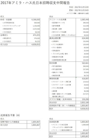 アミラさん来日に関しての収支報告を申し上げます。
