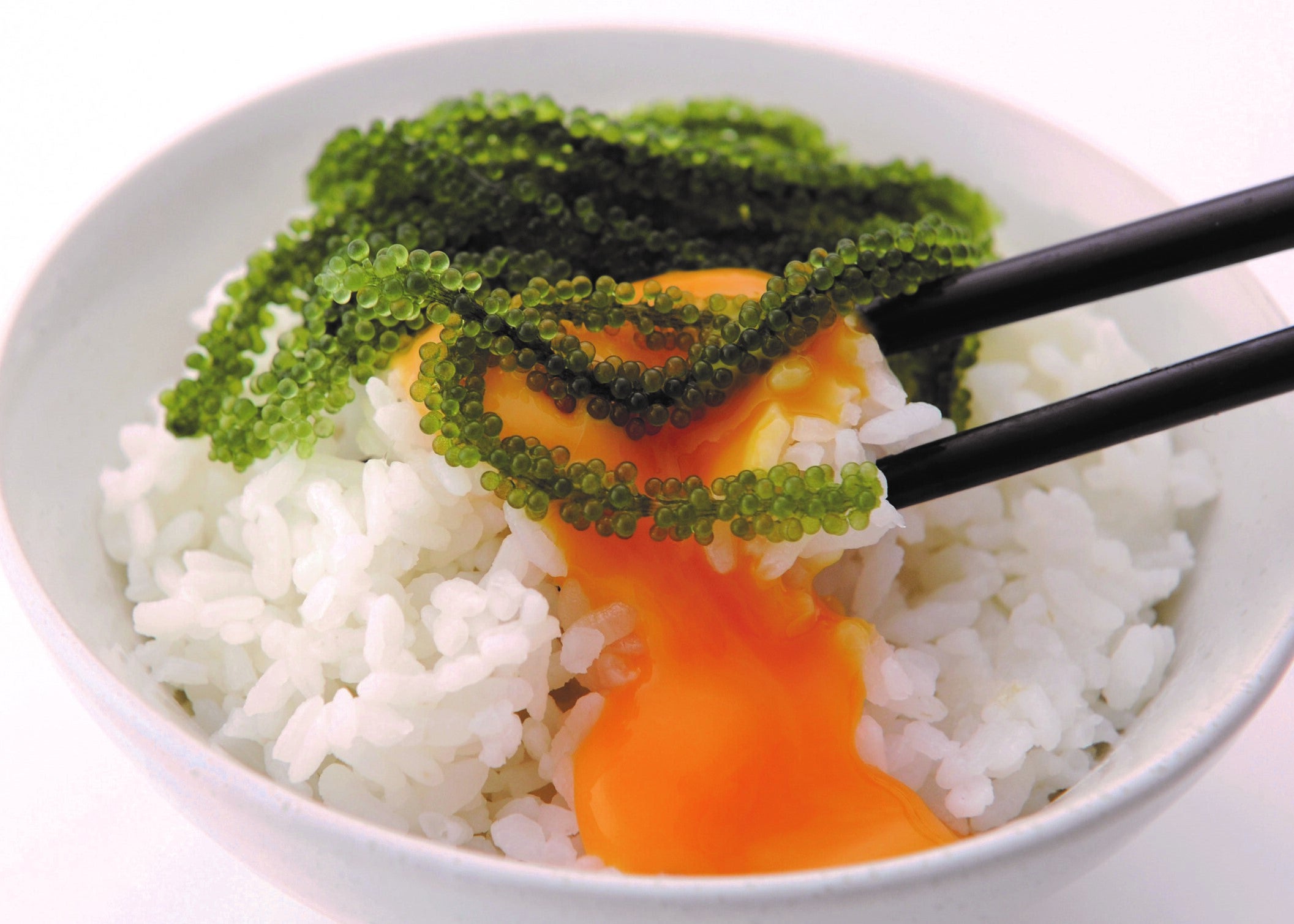 海ぶどう卵かけご飯と一緒に、お海苔やおネギと一緒に白出汁でお召し上がりいただくと、
