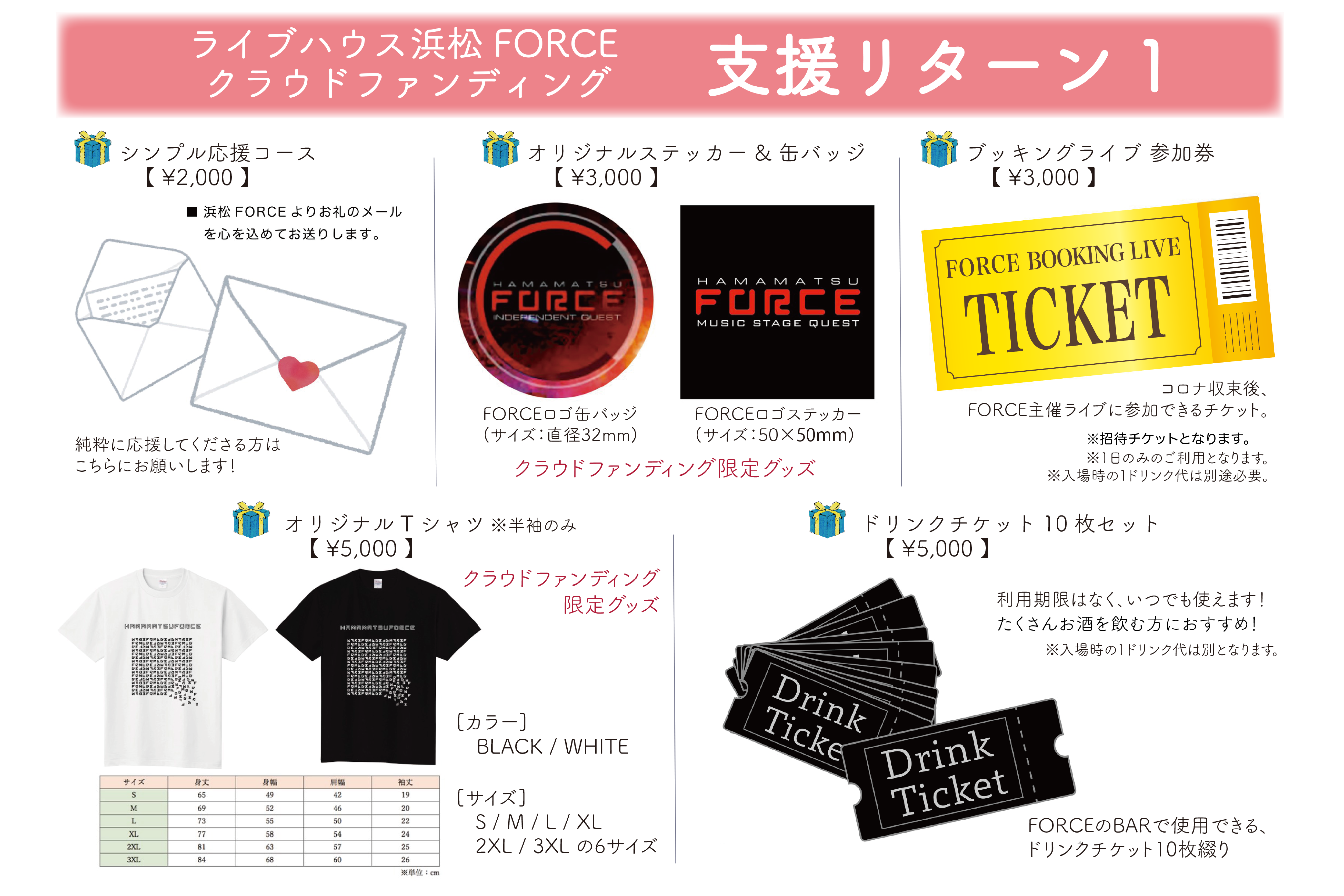 ■10000円〜【FORCEオリジナルステッカー&缶バッジ&Tシャツ&ドリンクチケット5枚】
