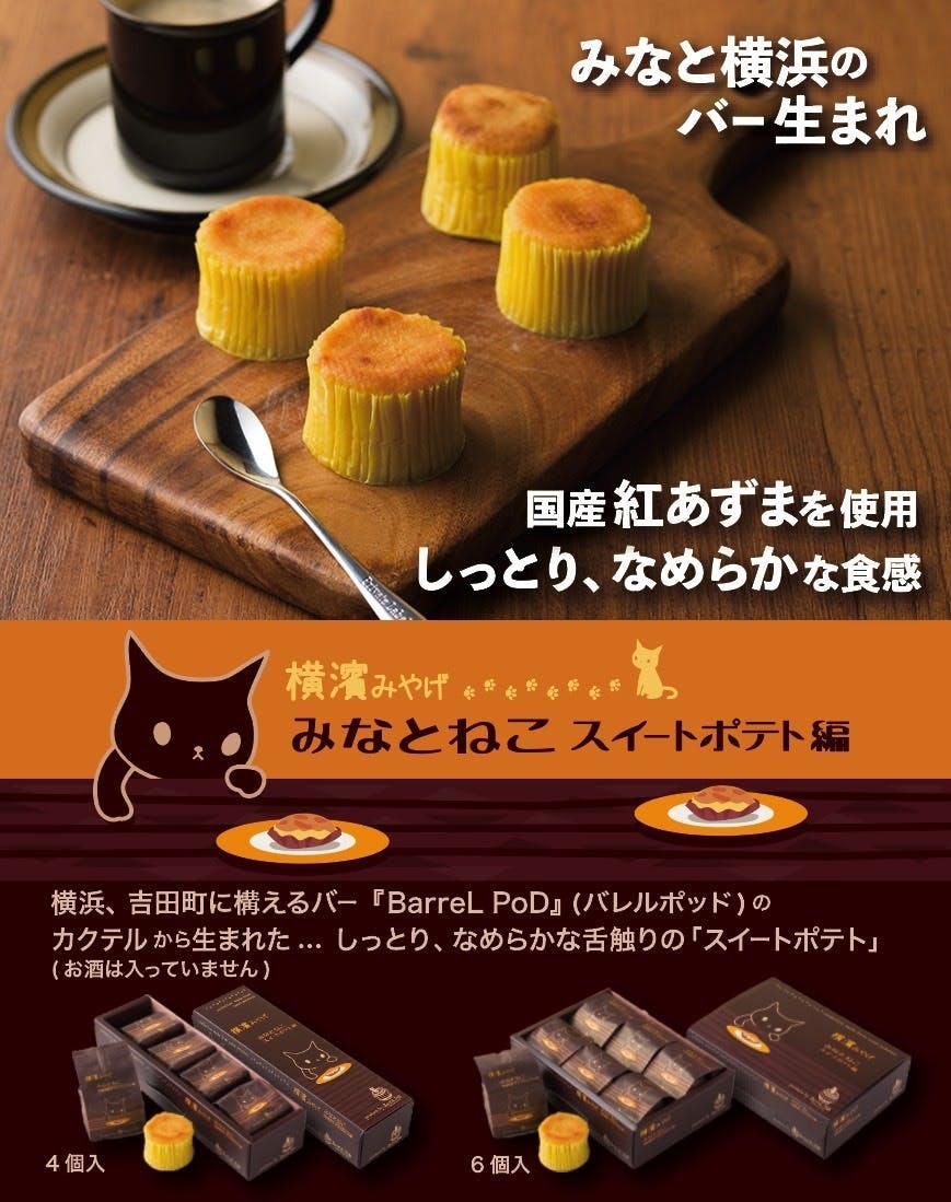 2018年6月から発売を開始し、「みなとねこ スイートポテト編」はヨコハマグッズ「横浜001」第18期認定商品としてなっております。