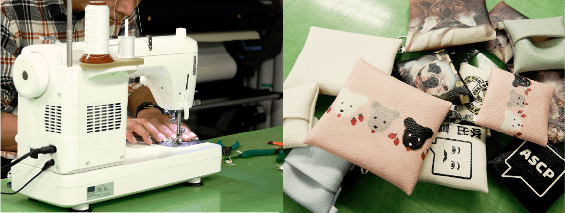 「今まで使った事のない新しい合皮素材に印刷できます!」