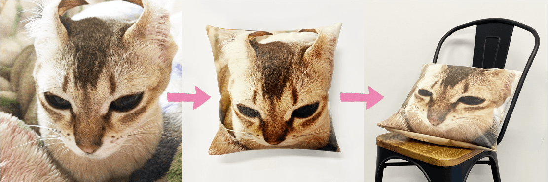 当社の理念である、「空間づくりとその空間でのより良い“体験”」というものを、このクッションを通じて展示会という決められた場所ではなく、皆様のご自宅の空間で、自由に幅広く体験いただけるものだと考えます。写真でもイラストでも、いただいたデータから印刷いたしますので、その自由度はどこまでも広がります。