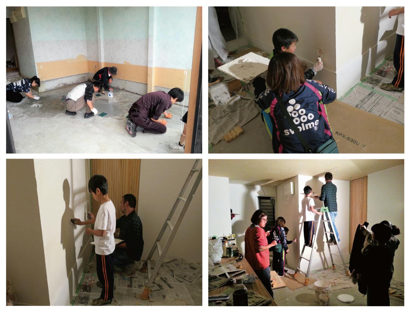 床を磨く作業や壁に漆喰を塗る作業はワークショップ形式で行い、栗山町内のお子さんや町外の方も参加してくださいました。