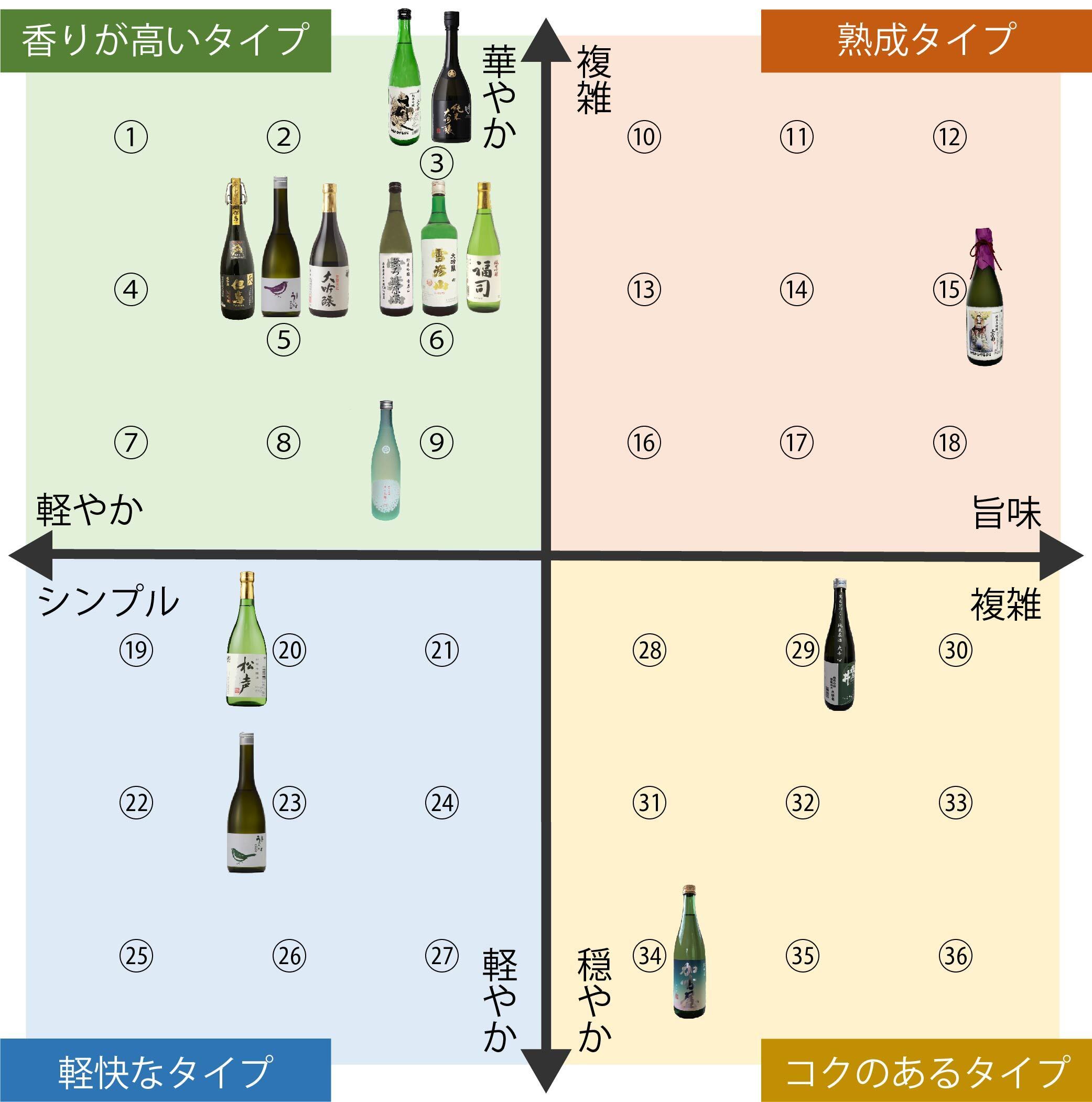 上記表の番号に対応した日本酒の名称と酒蔵。