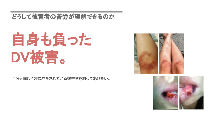私自身、過去にDVの被害を受け、本当に辛く、苦しく、怖い思いを経験しました。