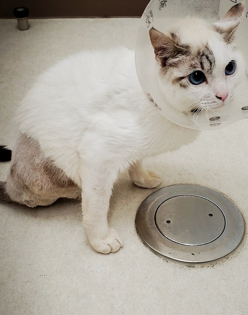いつもは会いに行くと耳をペタンとさせ、顔を強張らせてたアオくんでしたが今日は怖がる様子もなく撫でさせてくれました。看護師さんに抱っこしてみますか?と勧められ、抱っこすることもできました。ただたんにアオくんの機嫌が良かっただけかもしれませんが、とっても嬉しかったです。
