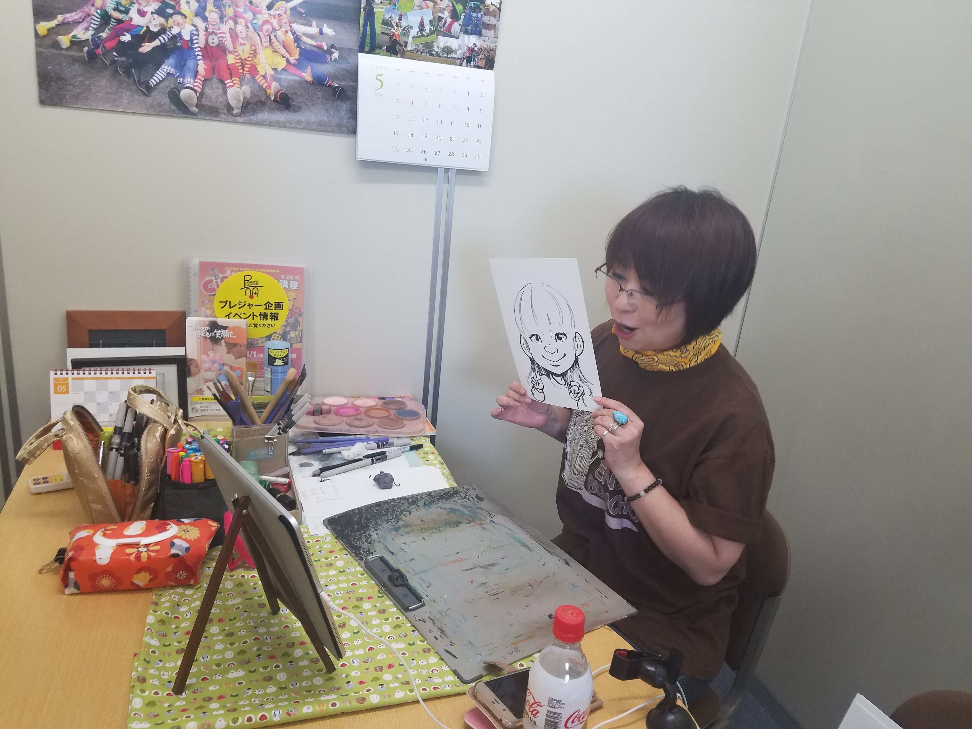 ②ZOOMを使用して、オンライン上で似顔絵をお描きします。