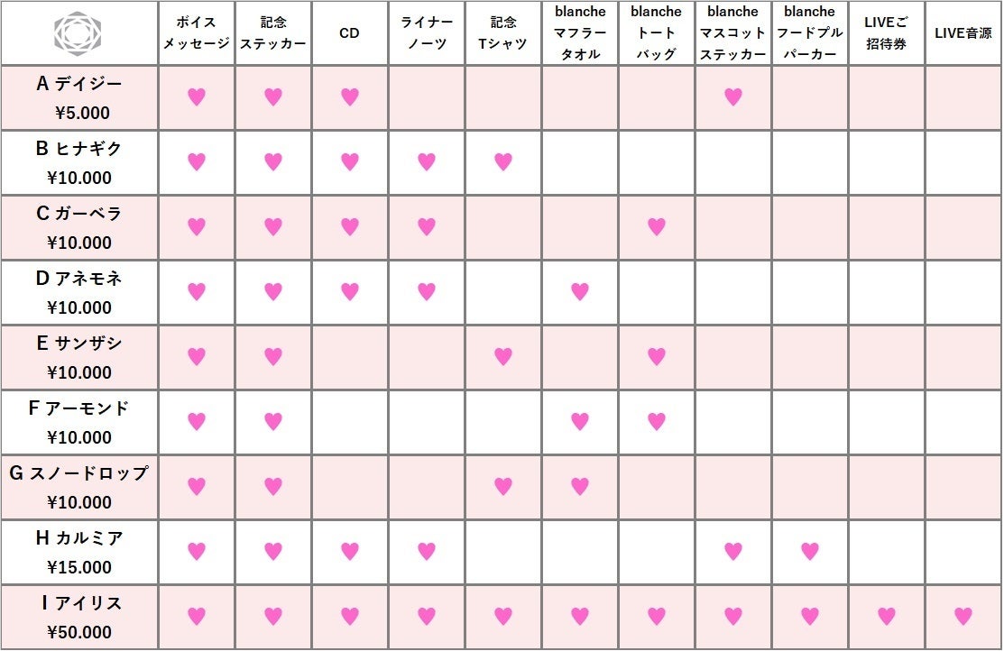 自身のレーベル名にもなっているオリジナルブランド『blanche』でご好評いただいたグッズをクラウドファンディング限定カラーでお届けします☆