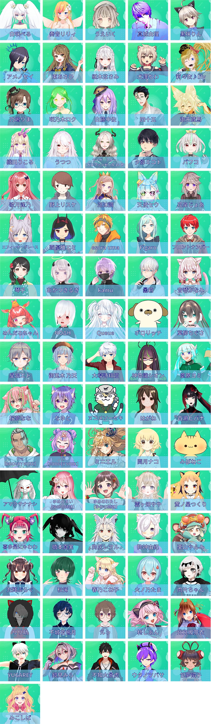 <Vtuber参加者>(150組:161名)