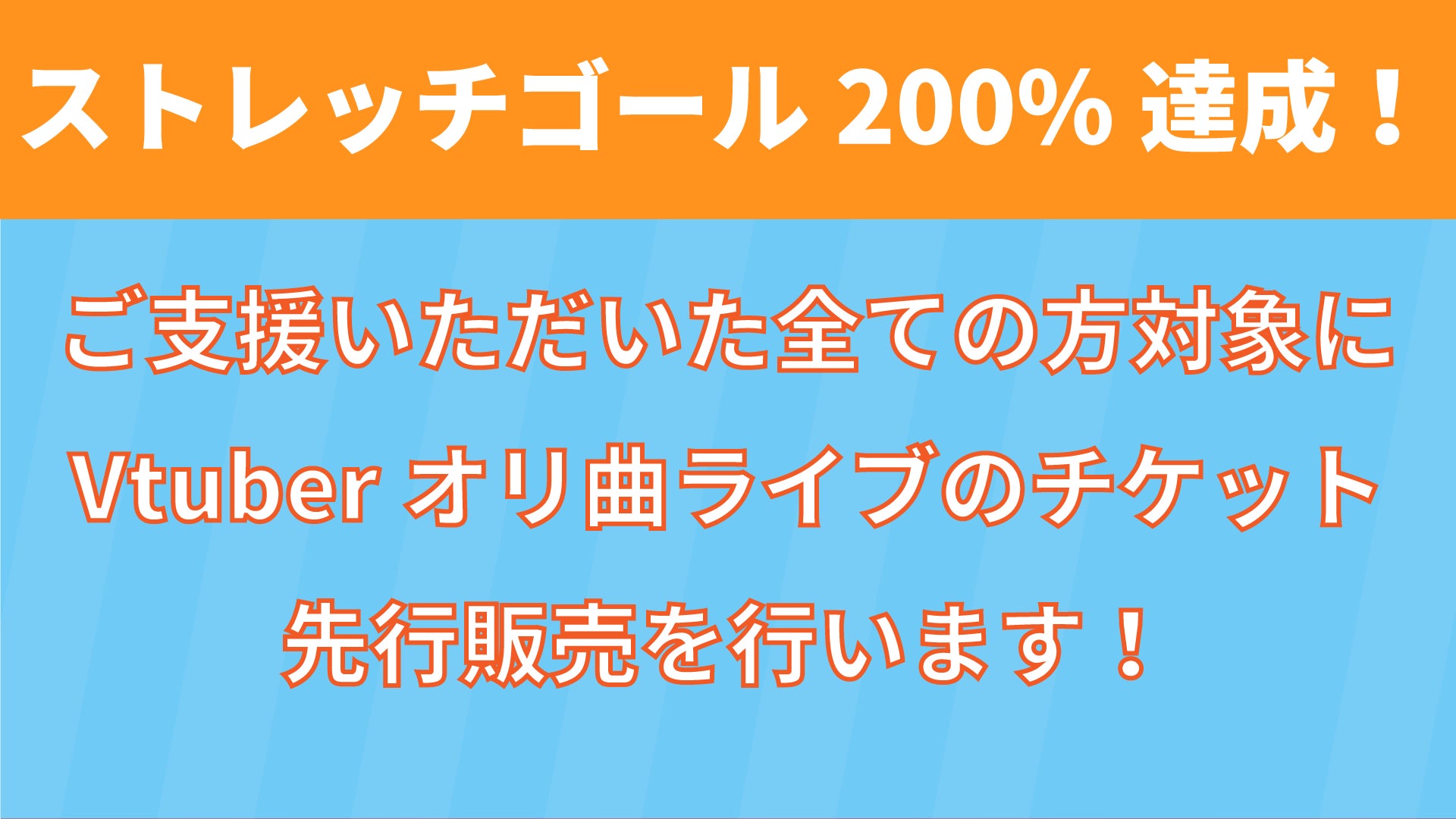 支援者証をお持ちの方(ご支援いただいた全ての方)限定で、Vtuberオリ曲ライブのチケットを先行販売致します。(支援時にご記入いただいたメール宛に先行販売に関するご連絡を致します。)