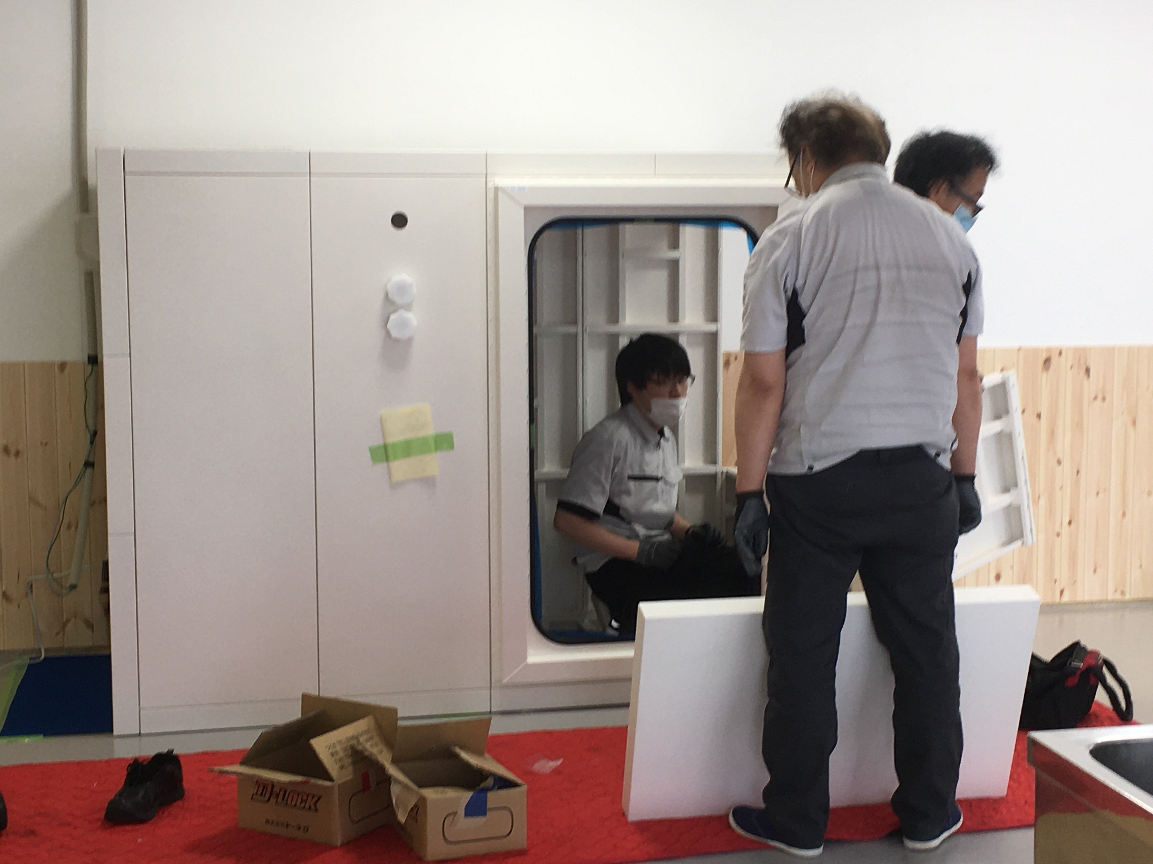本日、やっと酸素ボックス搬入、設置の作業が進められています。