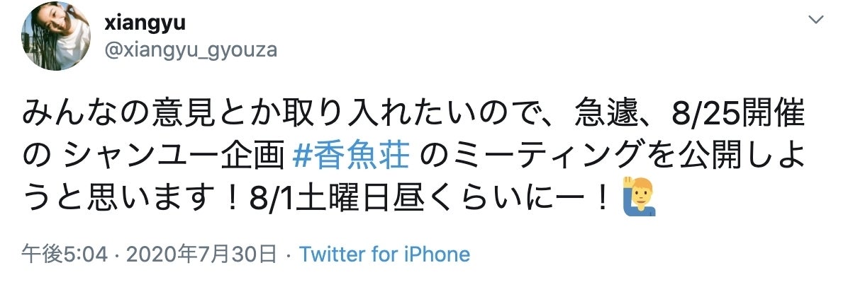 明日、急遽ではございますが、香魚荘#02に向けての事前打ち合わせを一般公開いたします。
