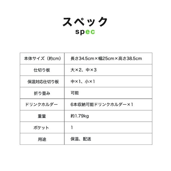 ドリンクや、お弁当などの一品などを収納できます。