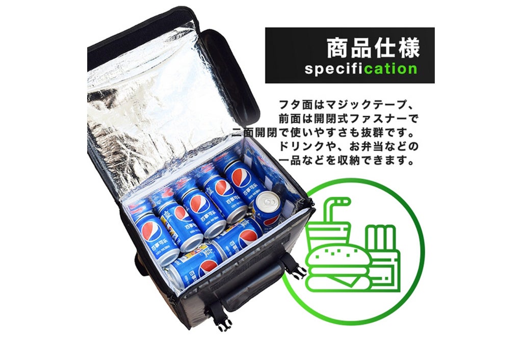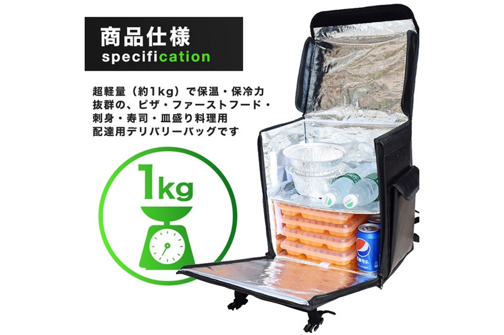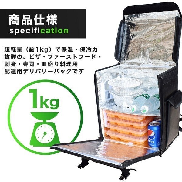 軽量(約1kg)で保温・保冷力抜群の、ピザ・ファーストフード・刺身・寿司・皿盛り料理用配達用デリバリーバッグです。折り畳み式なので、コンパクトに収納できます。