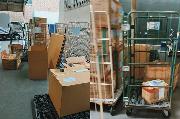 先週は1日で200個の出荷、倉庫に入りませんでしたので、現在は佐川急便の場所をお借りして