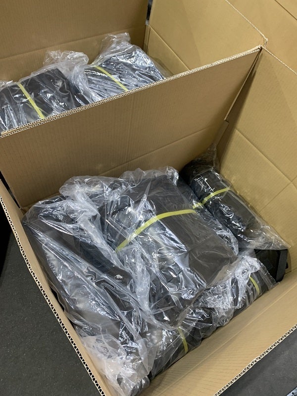 鞄1個は紙袋の簡易梱包、2個以上はこのような段ボールに入れて発送を行います。