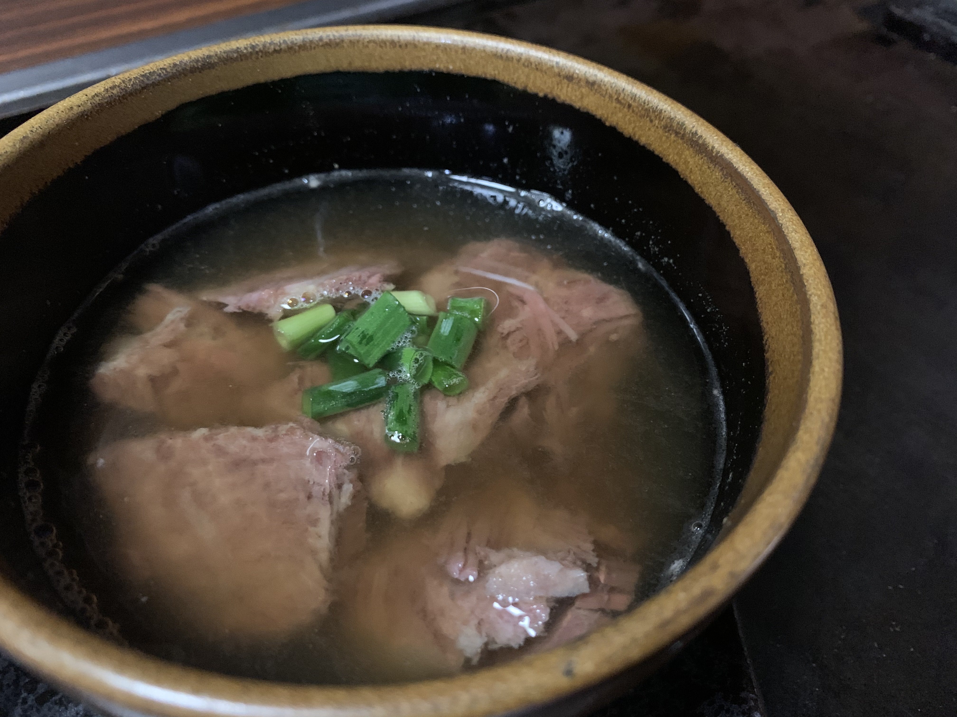 お客さま、ほぼ全員が頼まれる塩味の牛すじはぜひスープまでお召し上がりください。