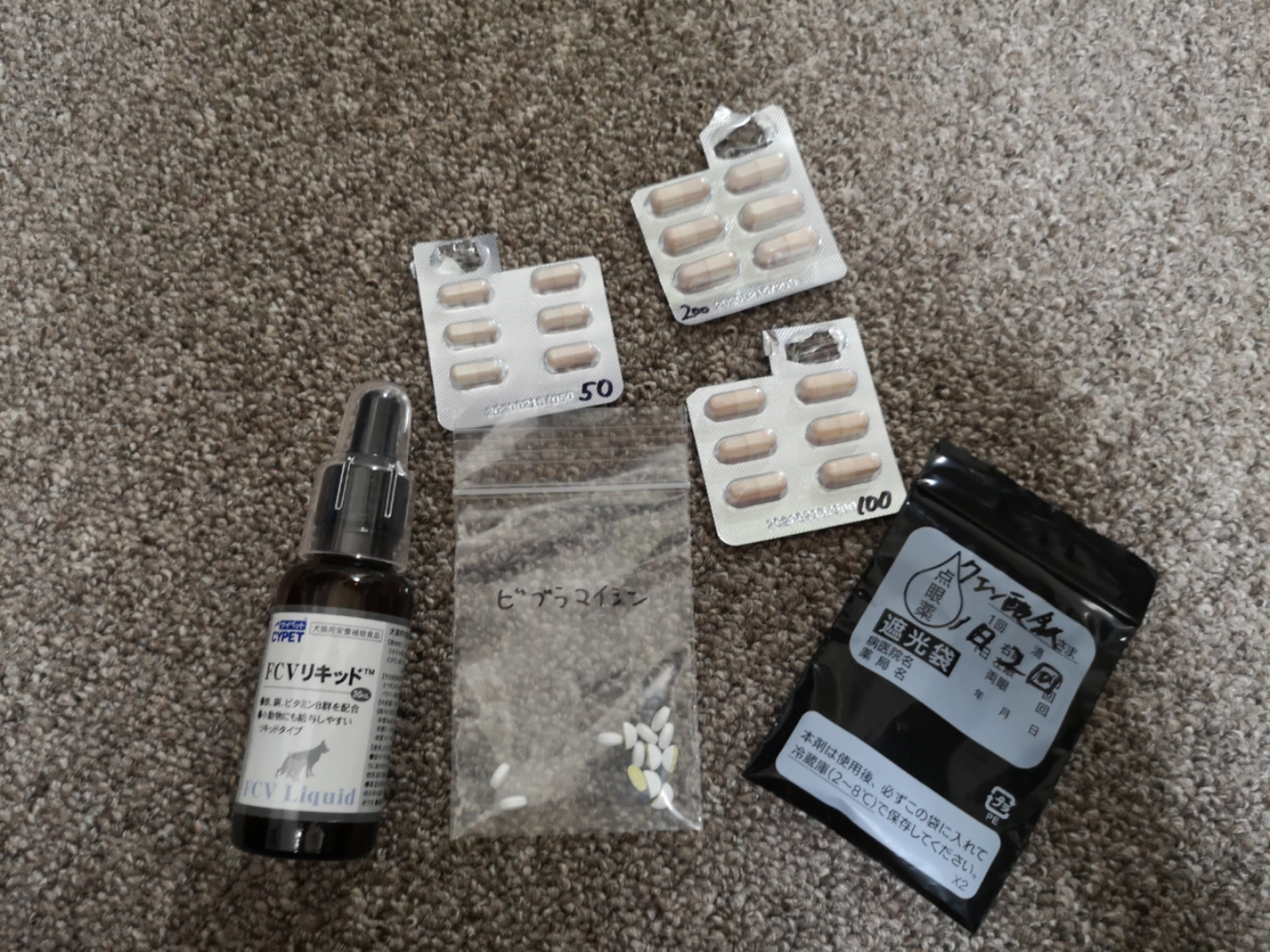 一つ目の病院で一週間治療したものの、回復の兆しが見えなかったため、5月3日に2つ目の(ネットと友だちの紹介で都内唯一、FIP治療のためのmutian薬を処方できる)病院に転院しました。再び検査したところ、やはりFIPと診断されました。この時、ミルクは腹水だけが増え,体重は2.85kgから3.3kgまで増加しました。先生と相談したところ、まずは一週間分で最大耐用量のmutian薬を投与することにし、これ以外にも貧血の飲み薬と消炎剤も一緒に処方されました。そして、もう一度精密検査もしなければなりません。