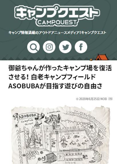 キャンプ情報満載のアウトドアニュースメディア「キャンプクエスト」さんに記事が掲載されました!https://camp-quests.com/18353/ 私たちがやりたいことが、本当に形にできればきっと素敵なキャンプ場になるはず。しかしながら、残り15日を切った現在。達成率が37%。まだまだ認知が足りてません。せっかく皆様からご支援いただいているのに、私の告知不足…。改めてのお願いで申し訳ございませんが、この取り組みを他の皆様にもお知らせいただけましたら幸いです。キャンプファイヤーページ https://camp-fire.jp/projects/view/279116こちらもフォローお願いします!!フェイスブック https://www.facebook.com/asobuba/ インスタグラム https://www.instagram.com/asobuba/