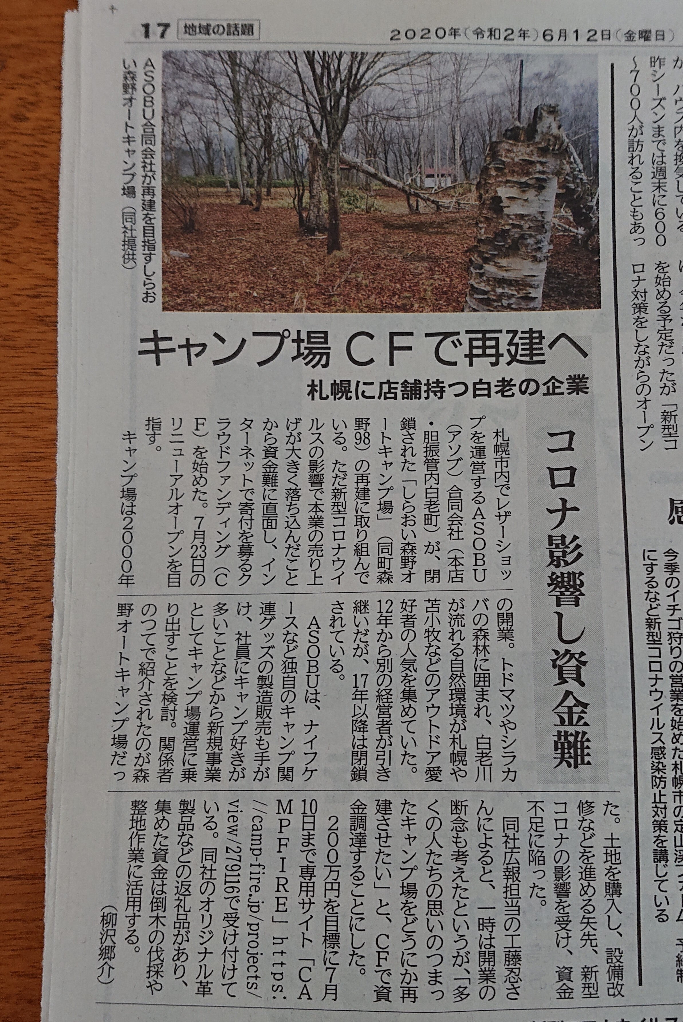 ありがたいことに、新聞社2社から取材が入りまして、記事が掲載されました‼記者の方もアウトドア好きということで話が盛り上がりました。作業していると、ドライブ途中に気になって寄っていただく方もいらっしゃいます。「楽しみにしてまーす!」と声をかけていただけるので、素直にうれしいです。期待に応えねば‼これから作業が佳境に入ります。スタッフも頑張っていますが、工期が結構遅れ気味…。頑張ります!!!!