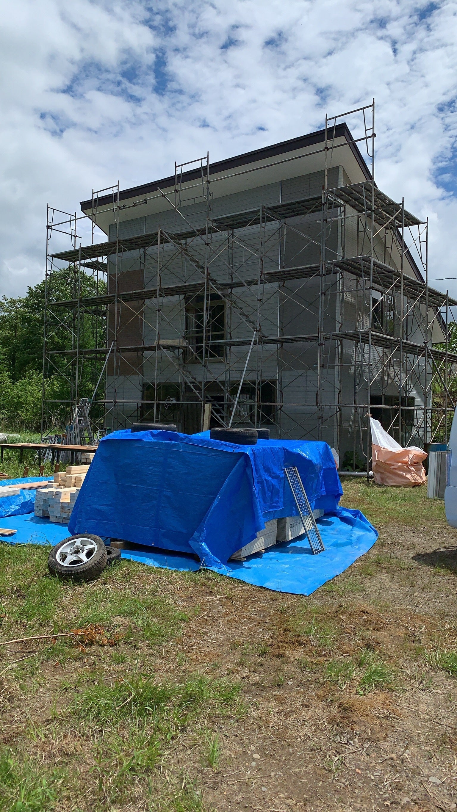 管理棟にも足場が組まれて、大改修が始まります。キャンプ場オープンと同時にASOBUBAのオリジナルアウトドアブランドも始動。管理棟は、そのSHOPも兼ねています。2Fは会員企業様のワーケーションスペースとなる予定。新型コロナを機に、働き方は急速に変わりました。それに伴って雇用体系も変化しています。そういうことにも対応しないと難しい時代になってきたんだなと思います。景色を眺めながら、おいしいコーヒーでも飲んで、ゆっくりと仕事をしてもらえるようなスペースにしようと思っています。会員企業も今後募集いたしますので、よろしくお願いいたします。