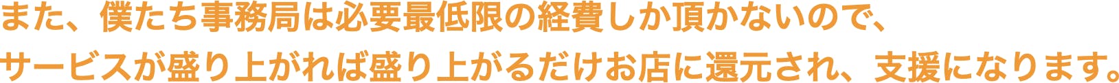 ※有志の個人による運営のため、サイト維持・運営やサービスを少しでも広げ来店につなげるための広告費の分、必要最低限のお金のみを売上に応じていただいております。